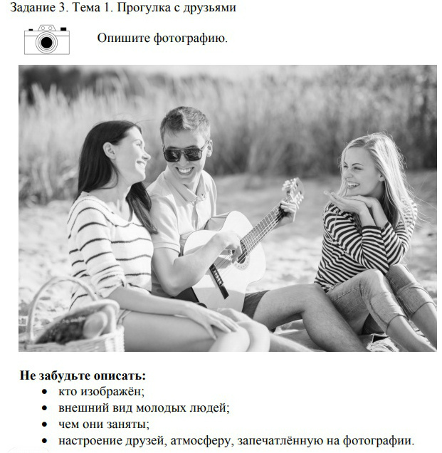 На картинке изображены друзья. Скорее всего они поехали на природу отдыхать от городской суеты. У парня красивое поло и стильные очки. У девушки слева милое лицо,одета она в полосатую кофту,и в белых шортах. И у девушки справа тоже полосатая кофта и элегантные бриджи. Похоже парень играет веселую песню на гитаре,а дамы слушают с хорошим настроением. А самое главное что у них уютная атмосфера,радостное настроение без всяких гаджетов,они просто слушают гитару и радуются.