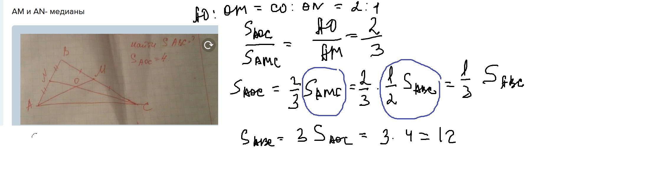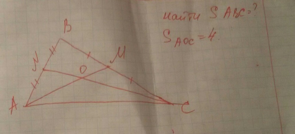 Можно так: 3 медианы делят треугольник на 6 равновеликих Sabc = 12 ед².