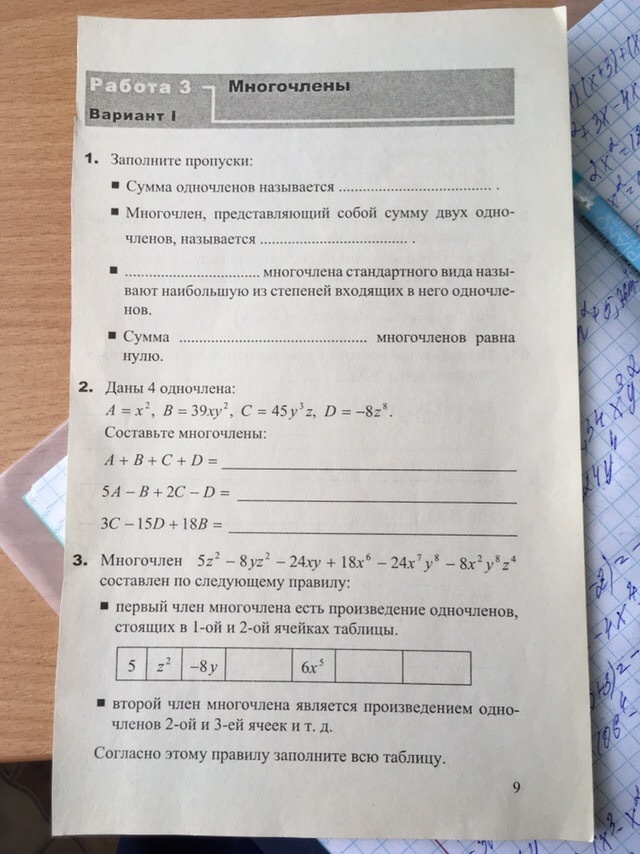 5 | z² | -8y | 3x | 6x⁵ | -4x²y⁸ | 2z⁴