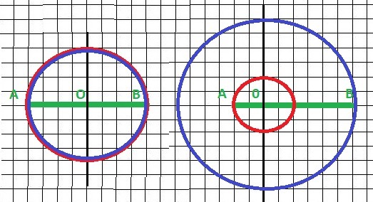 Радиусы окружностей уже заданы в условии задачи - R1= AO и R2= OB.