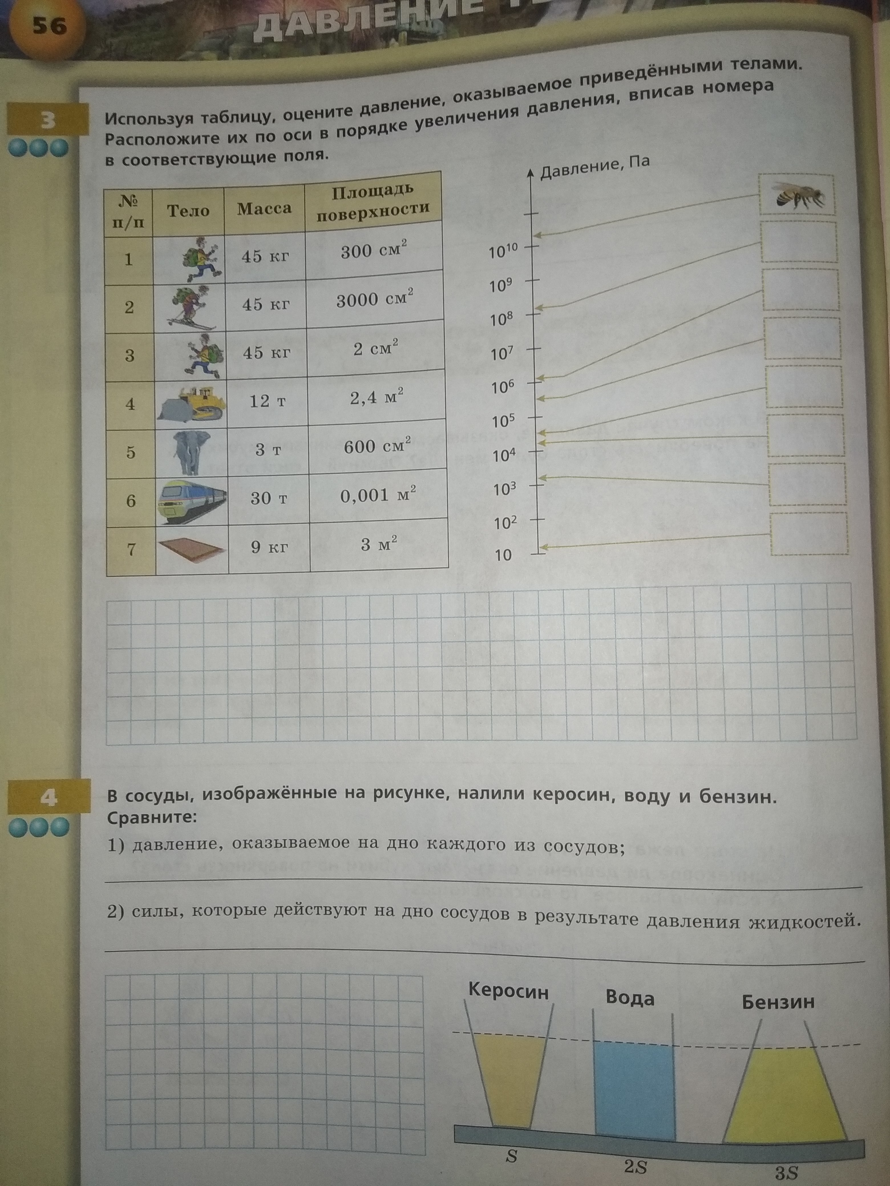 №3: p=45×10/0,0002=2250000Па=2250КПа