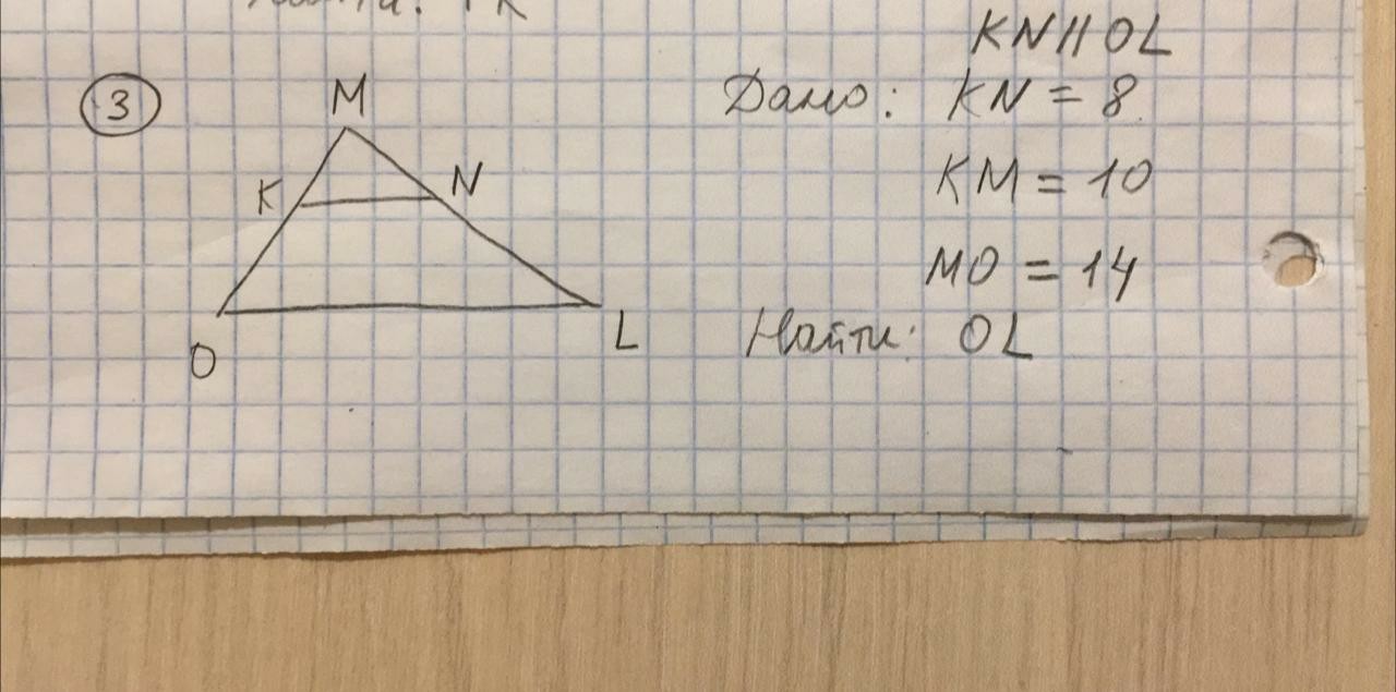 треугольники OML и KMN подобны. Коэффициент подобия равен OM:KM=14:10=1.4.