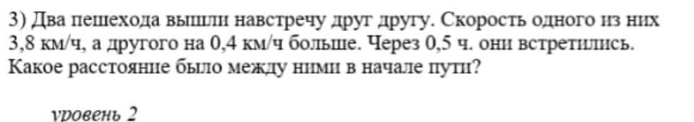 1) 3.8+0.4=4.2 (км/ч) - скорость второго