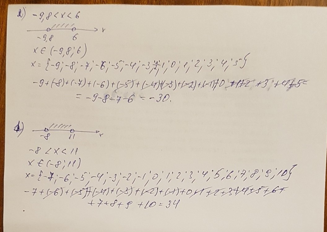 Найдите сумму всех целых чисел расположено на координатной прямой между числами