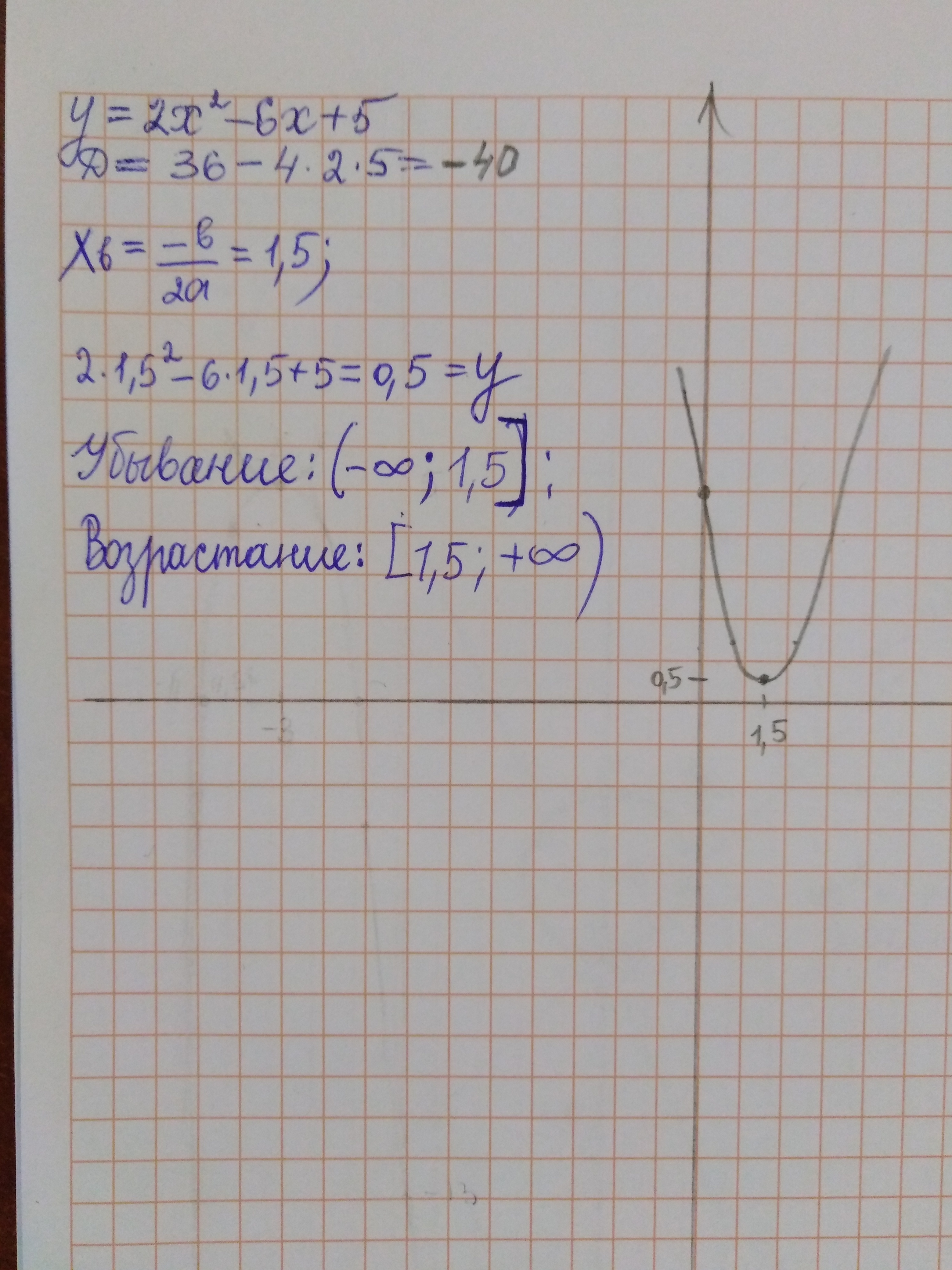 Постройте график функции f(x)=2x² - 6x + 5 и , используя график , найдите :