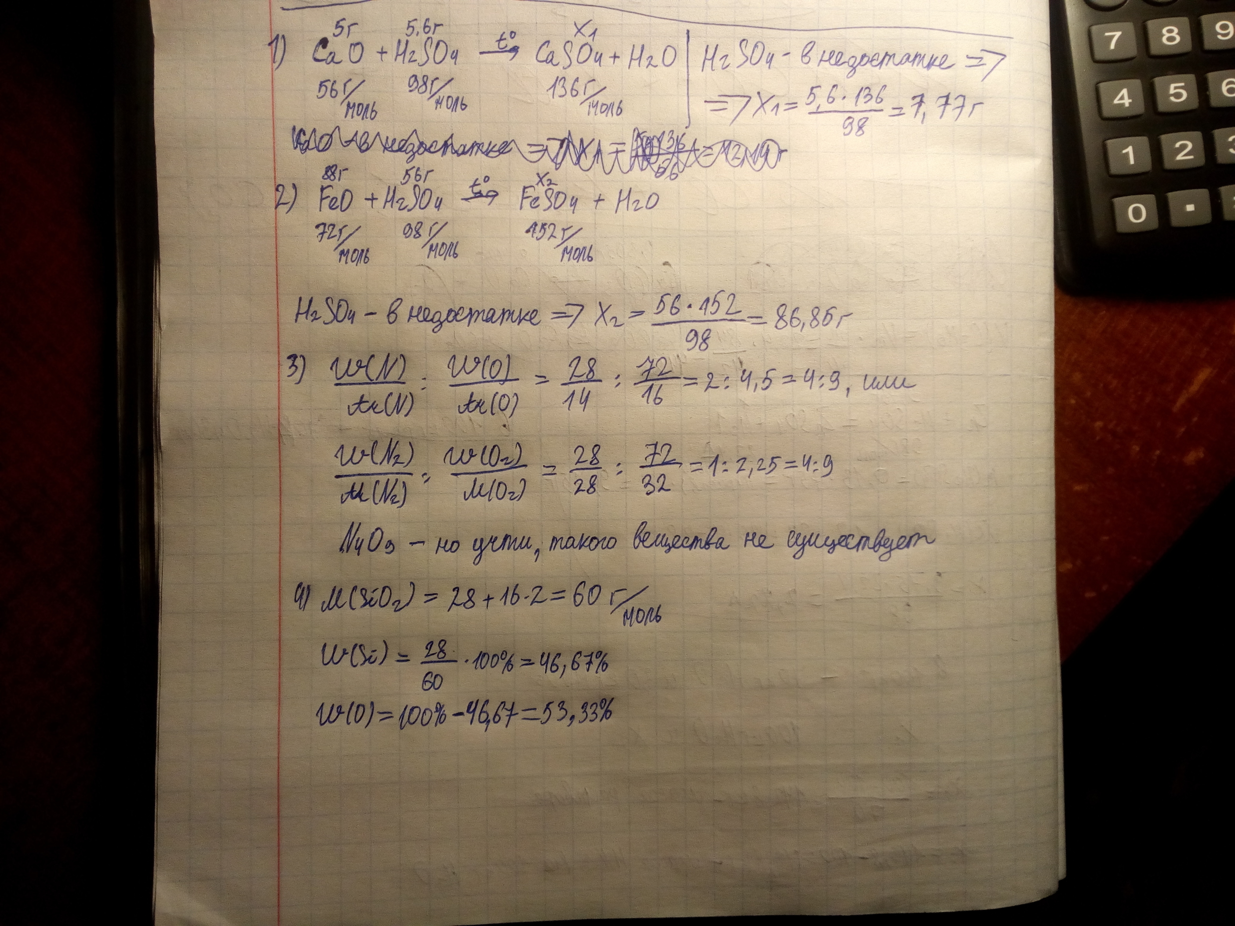 1) Масса соли, образованной при нагреве 5 г оксида кальция и 5,6 г серной кислоты, ... г.
