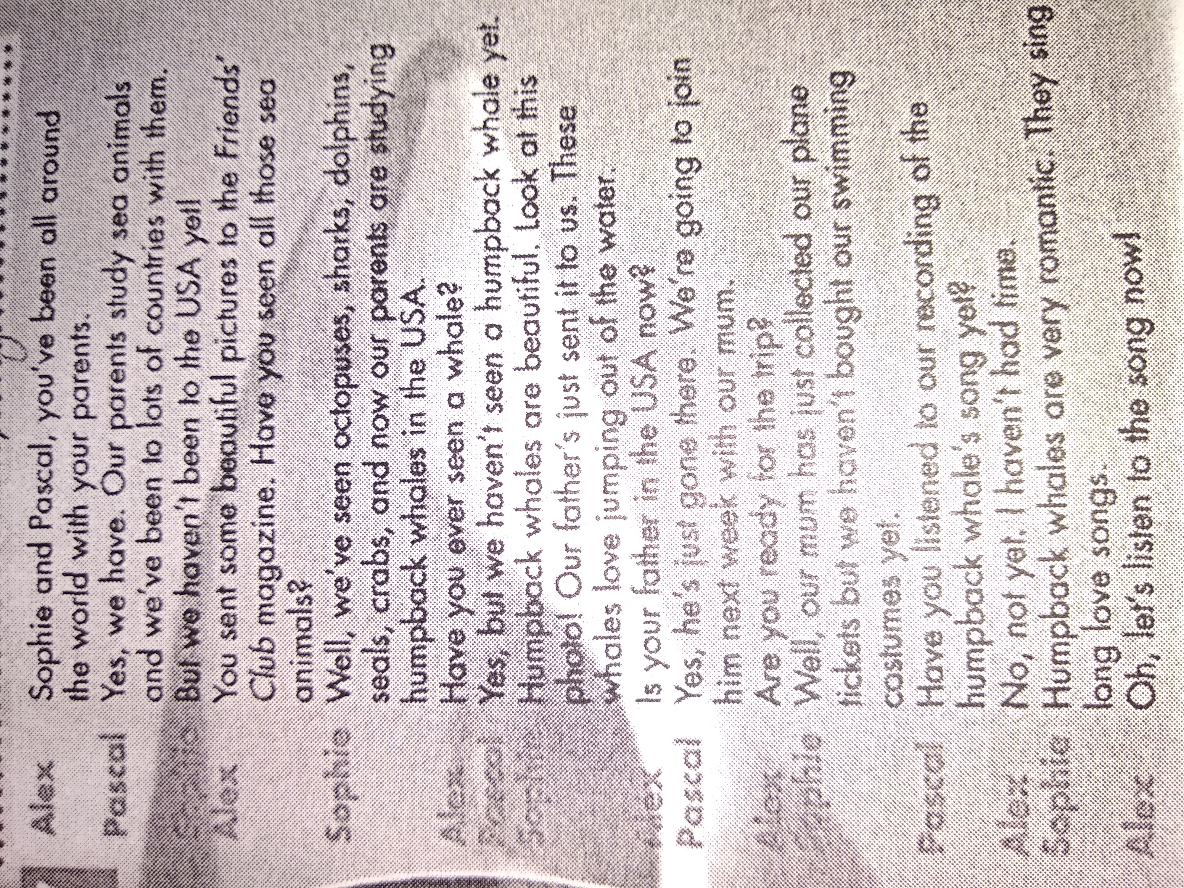 Паскаль: ты уже слушал нашу запись песни горбатого кита? Нет, не сейчас. У меня нет времени.