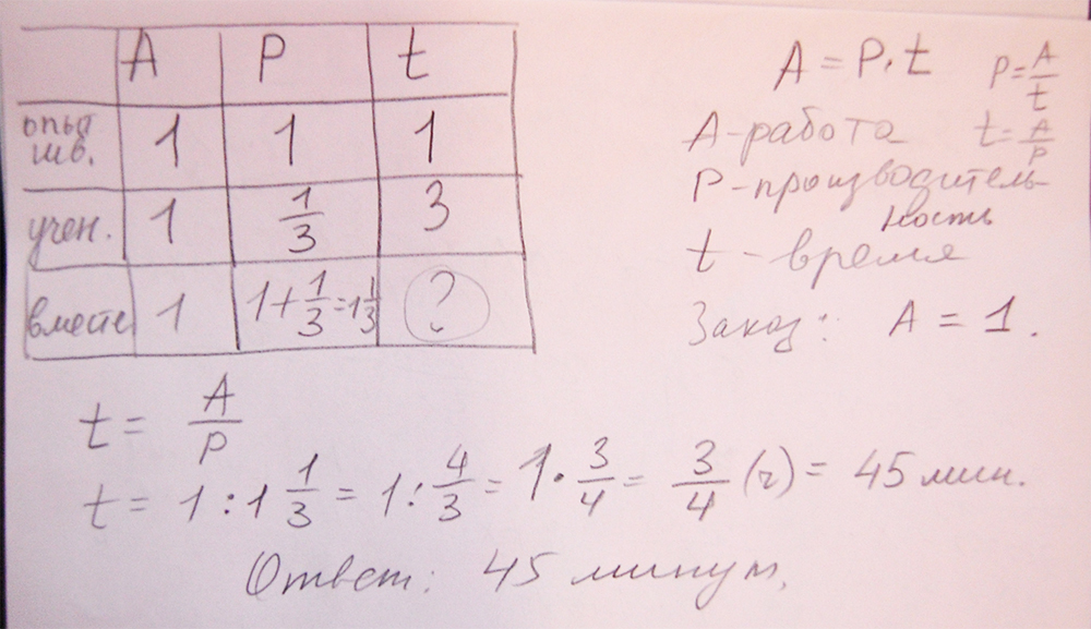 опытная швея справится с выполнением заказа за 1 час, а ее ученица за 3 часа. Сколько времени будут выполнять заказ швея вместе с ученицей при совместной работе?