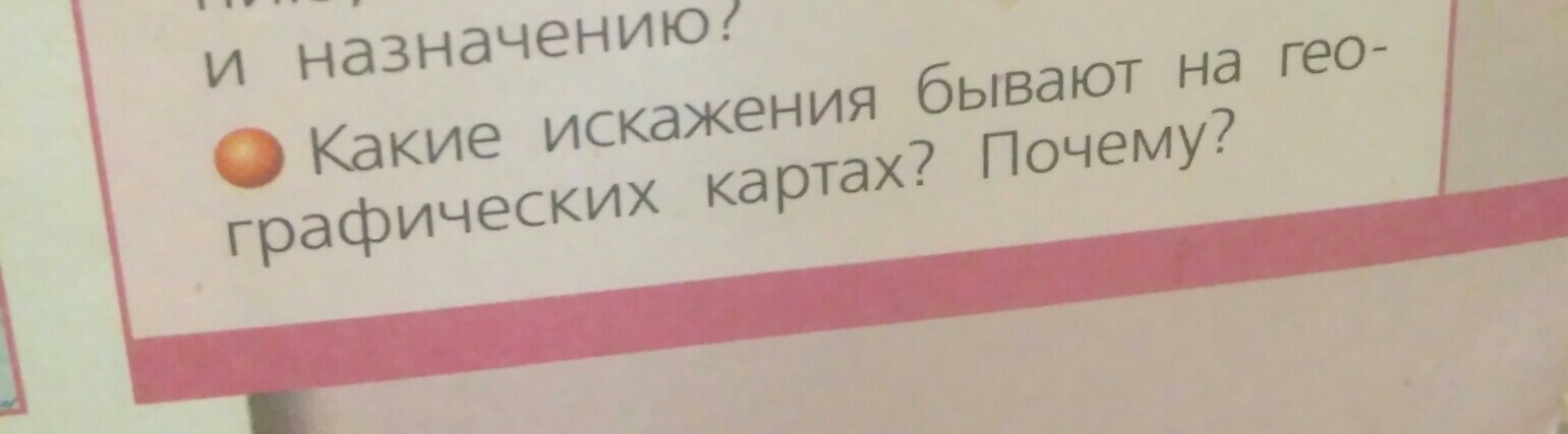 При изображении поверхности Земли на плоскости, т. е. на карте, возникают четыре вида искажений, которые называются искажениями длины, площади, угла и формы.