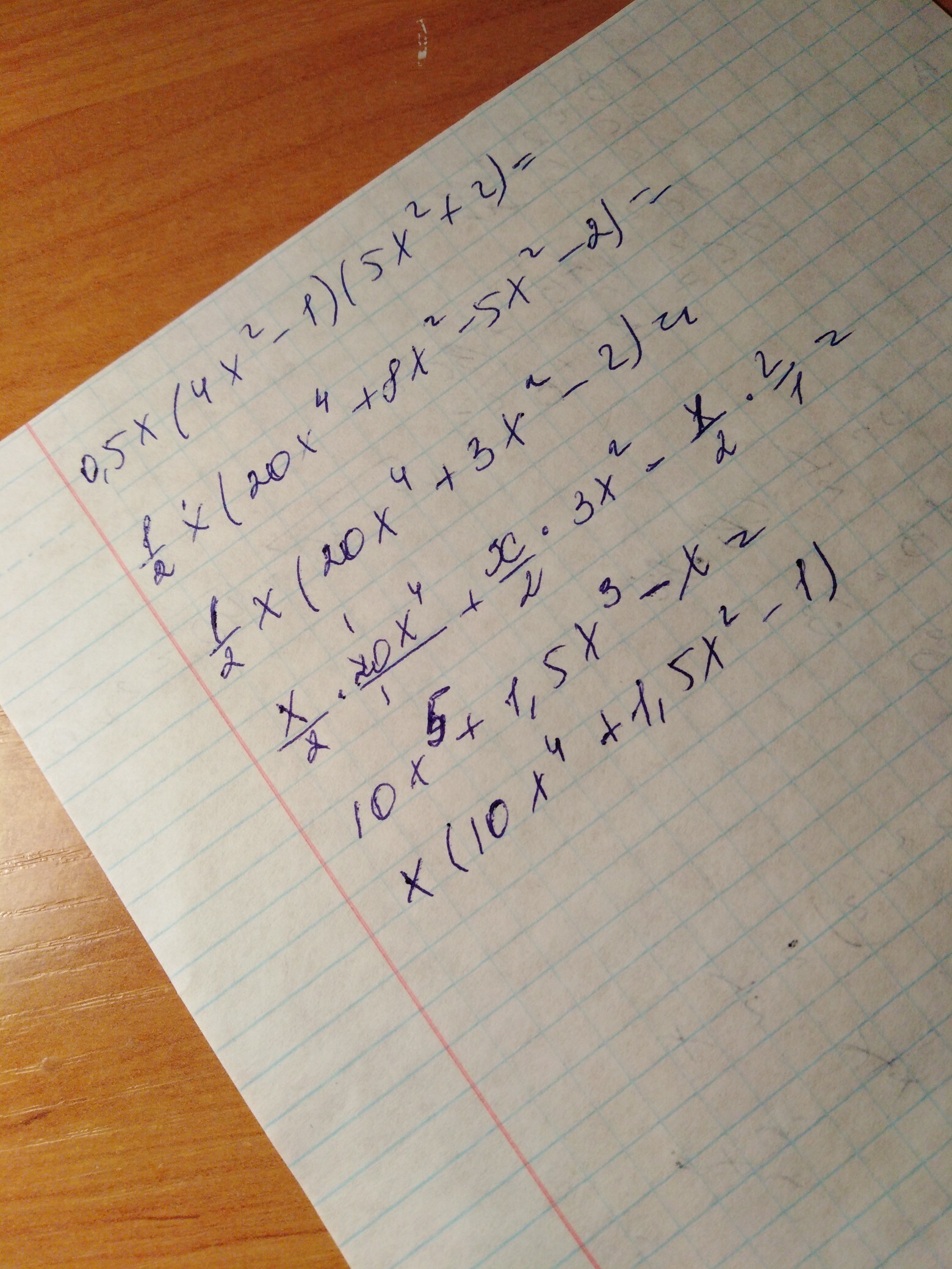 Нужно упростить выражение 0,5 * х * (4 х^2 - 1) * (5 х^2 + 2).