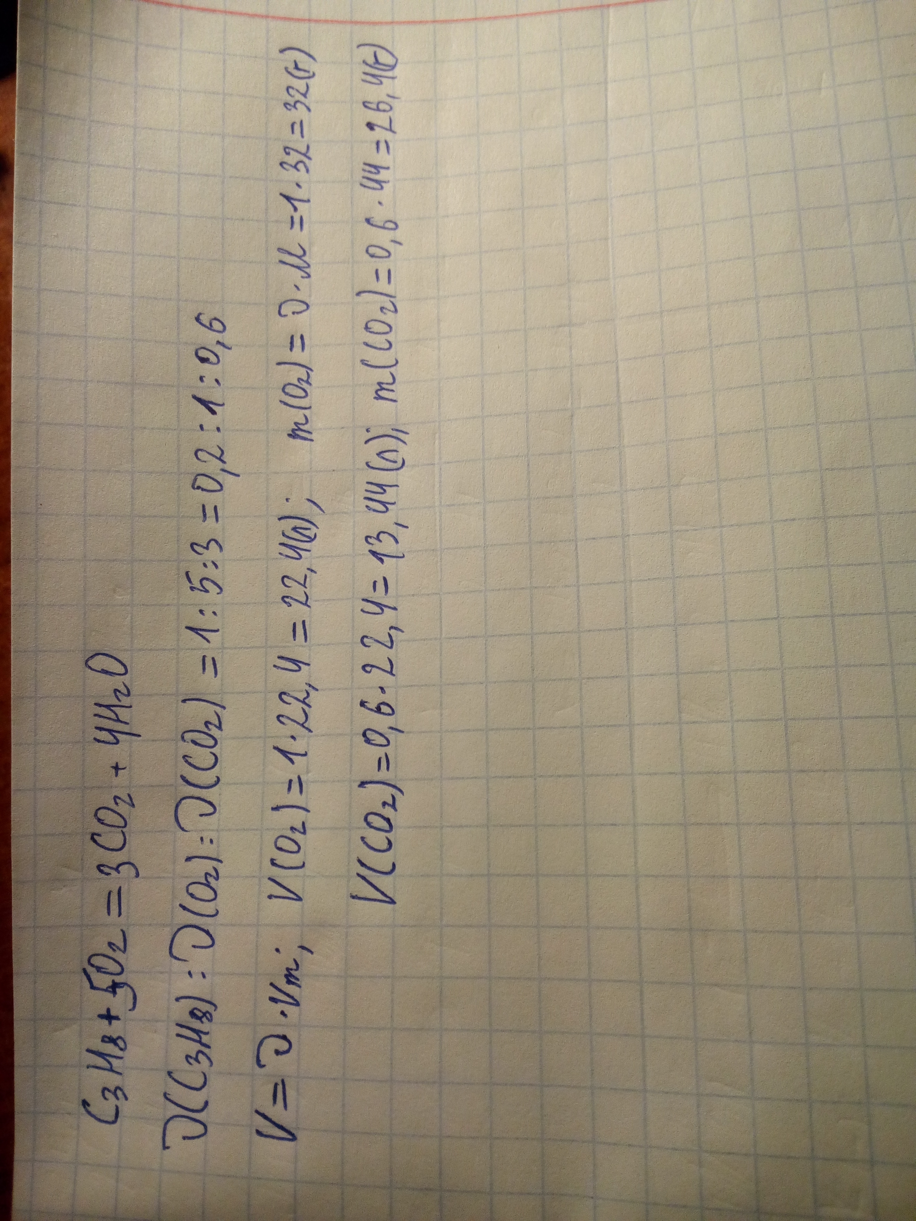Пропан кількістю речовини 0,2 моль згорів в атмосфері кисню.Який об'єм кисню витратився,а карбон(4)оксиду утворився?Якій масі відповідають такі об'єми?