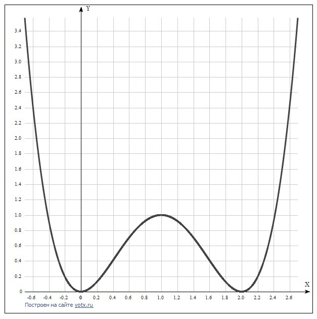 Исследуйте и постройте график функции у=х^2(x-2)^2Все подробно опишите и постройте график Срорчно надо,заранее спасибо