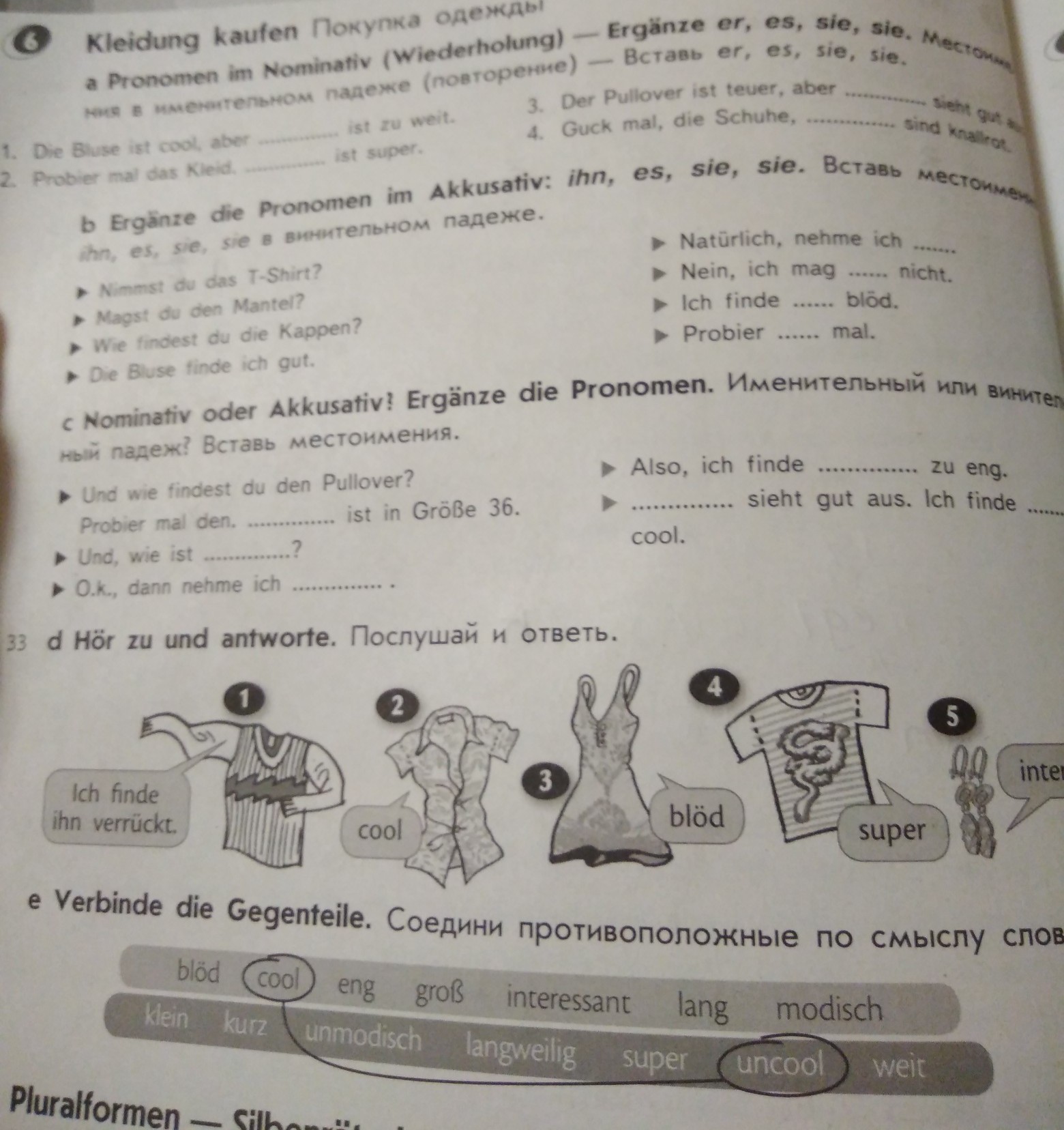 Ich finde sie (die Bluse) cool. Ich finde es (das Hemd) cool.