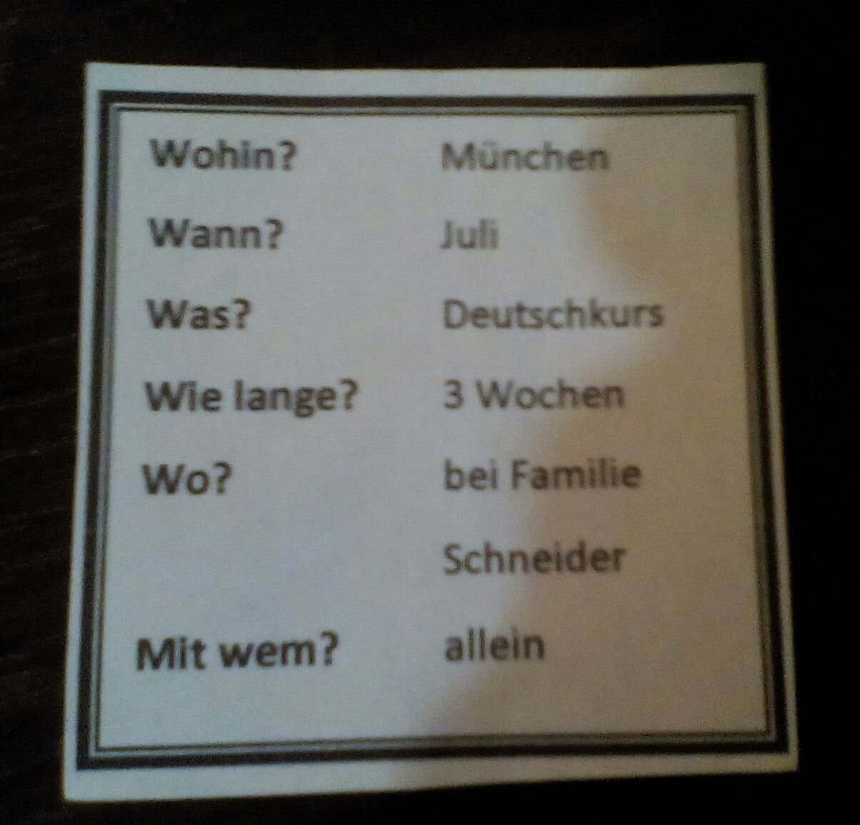 Ich will im Juli nach München fahren. Der Deutschkurs wird 3 Wochen dauern.