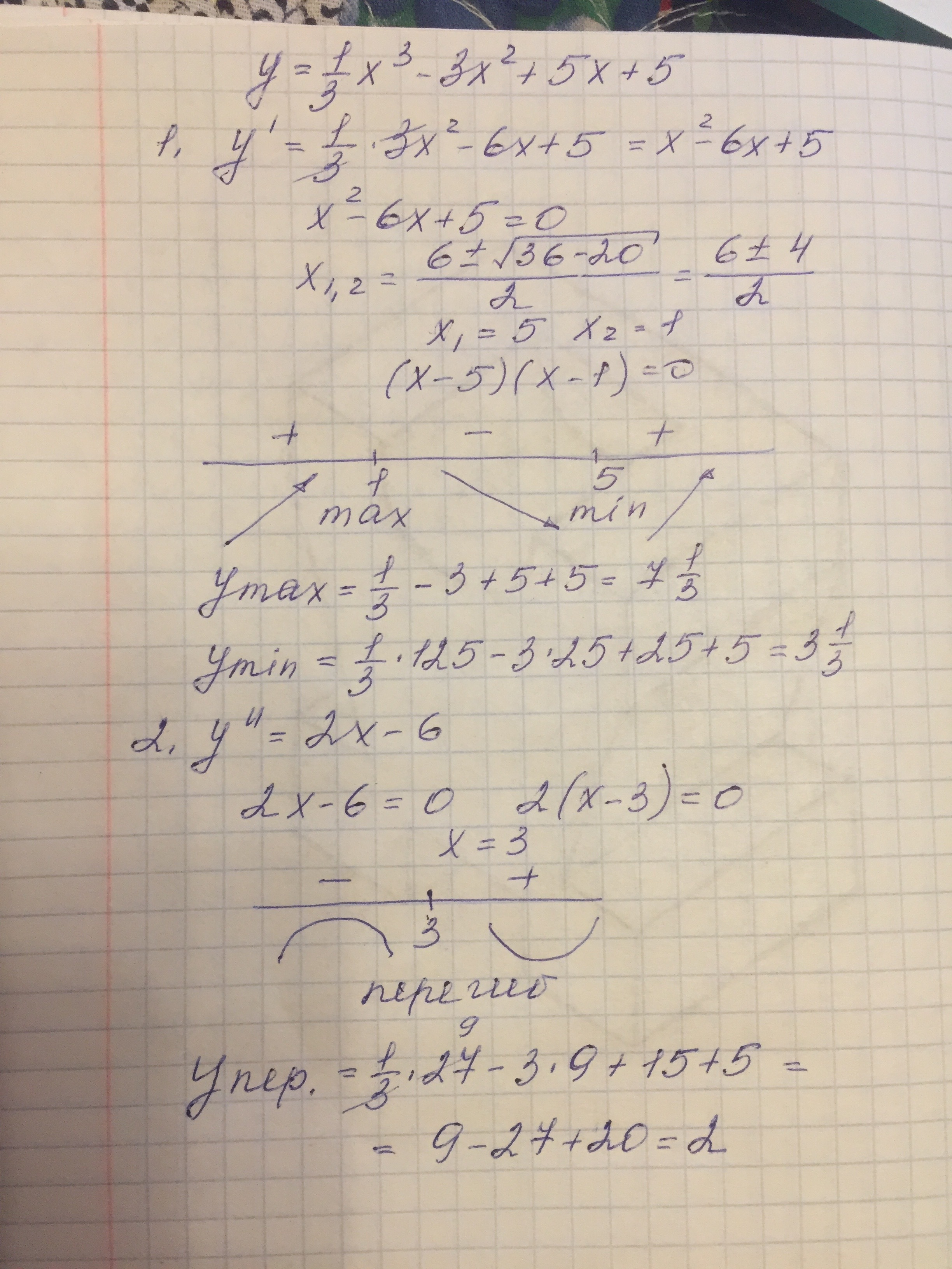 Найти промежутки возрастания и убывания функции, точки максимума и минимума, промежутки выпуклости и точки перегиба функции.