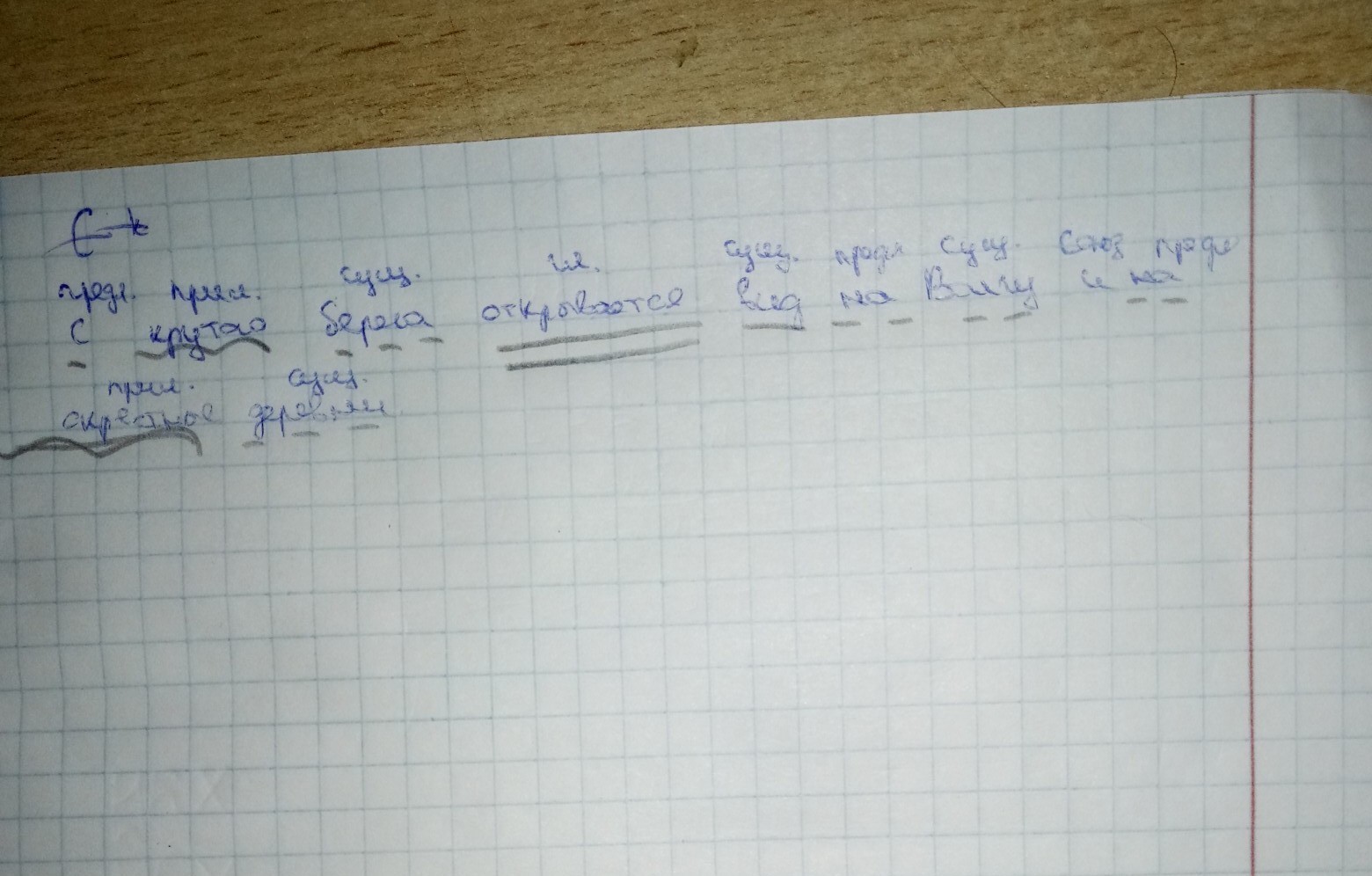 С крутого берега открывается вид на Волгу и на окрестные деревни. Разобрать по членам предложений и по частям речи.