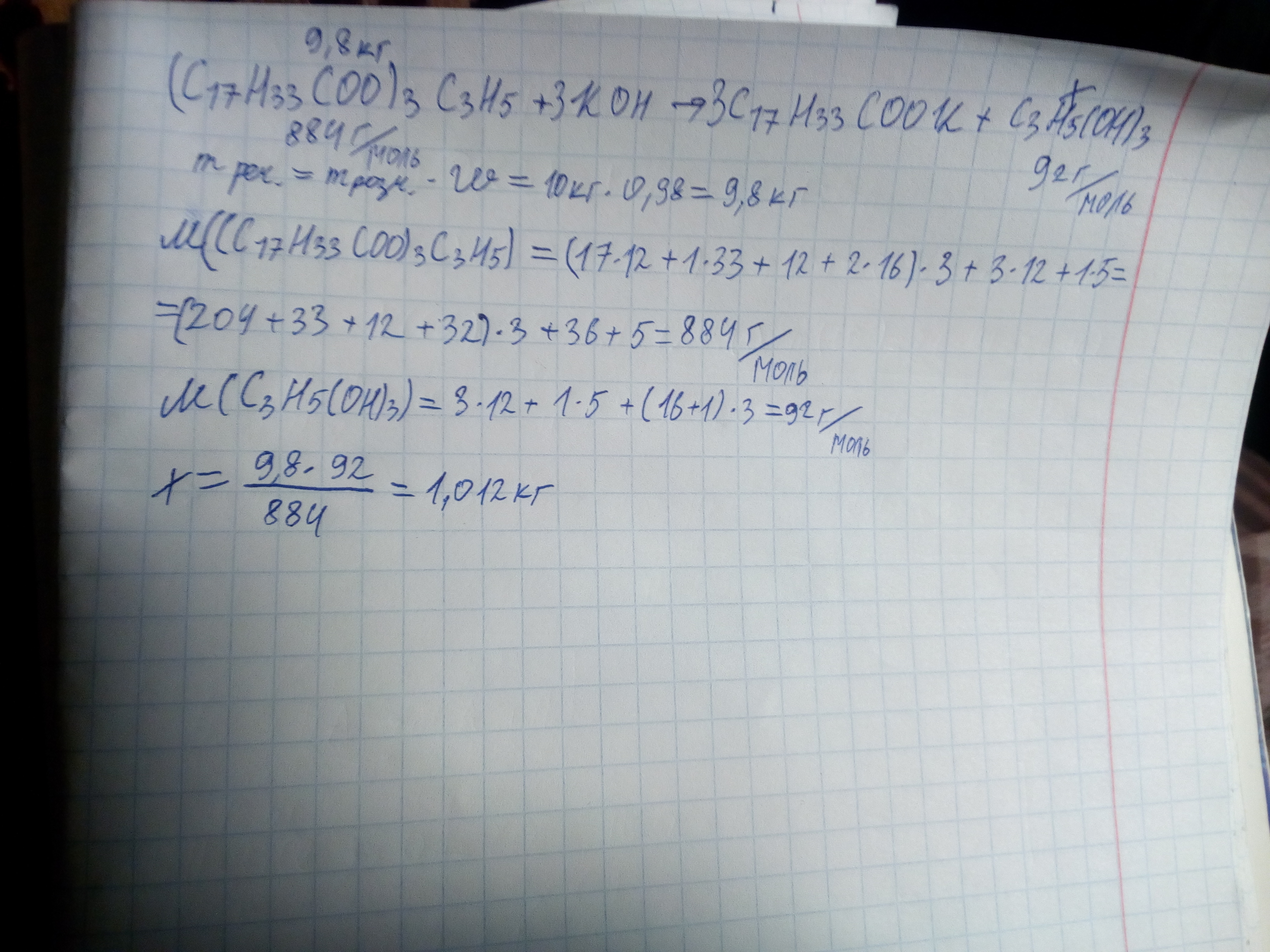 ньої кількості калій гідроксиду з 10 кг триолеїну, що містив 2 %