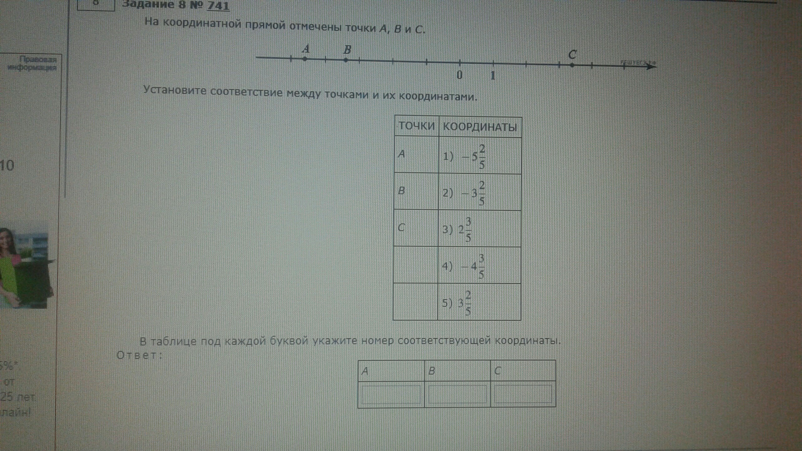 Считаем сколько целых единичных отрезков от 0 до точки. Например до точки С - 3 целых отрезка и еще немножко, поэтому ответ