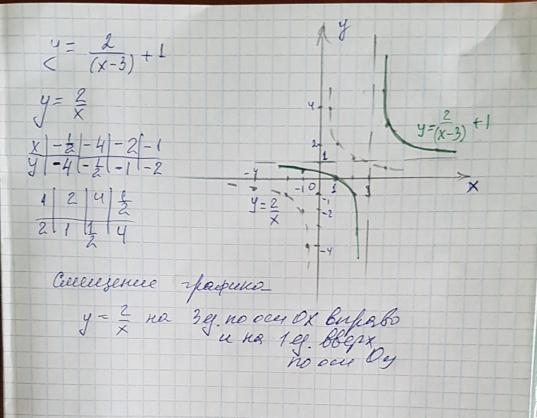 Я понимаю что это гипербола, но не могу понять что делать дальше после того как начертили ее, там ведь вправо на 3 единицы и вверх на 1?