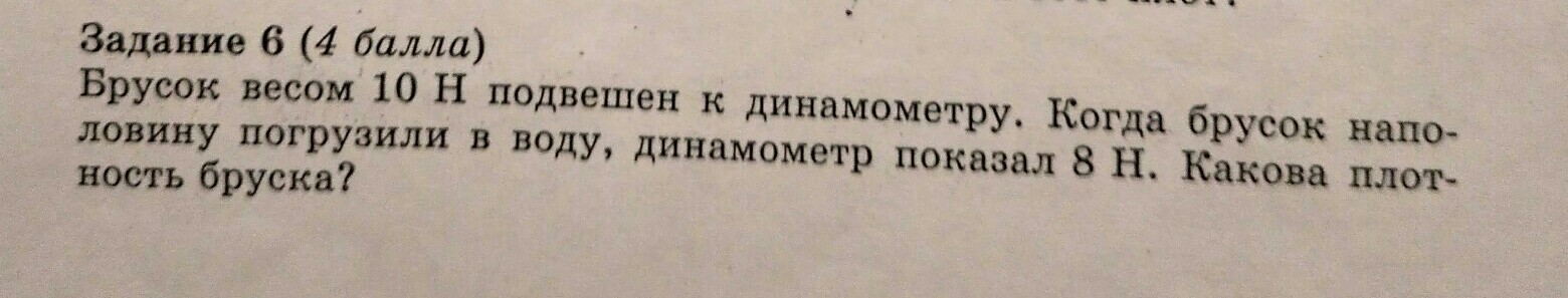 сила Архимеда равна разности веса бруска в воздухе и воде :