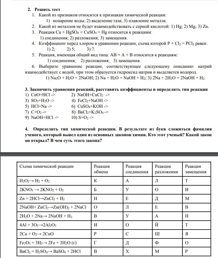3) 2HCl + 2Na = 2NaCl + H₂