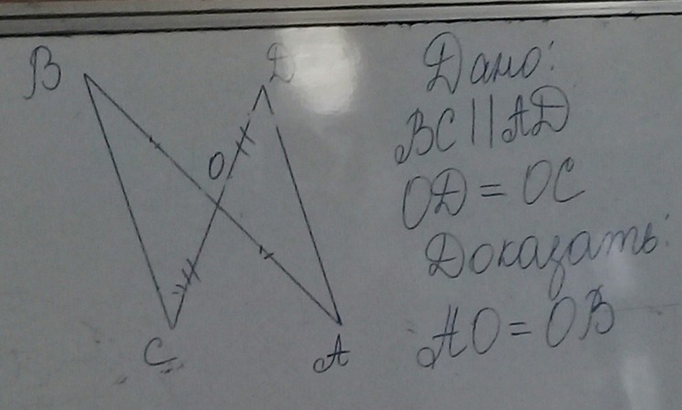 Так как ВС||АD то углы ОАD и ВОС равны так как на крест лежащие углы