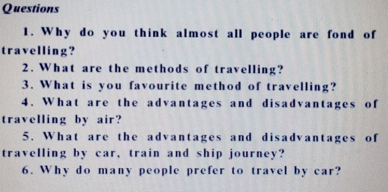 Almost all people are fond of travelling. It is very interesting to see new places, another towns and countries. People may travel either for pleasure or on business. The-re are various methods of travelling. For me there is nothing like travel by air; it is more comfortable, more convenient and, of course, far quicker than any other method. There is none of the dust and dirt of a railway or car journey, none of the trouble of changing from train to steamer and then to another train.
