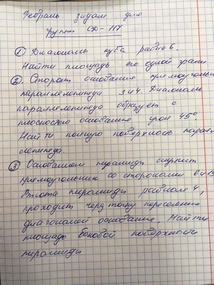 3. Если я правильно разобрал стороны прямоугольника 6, 15. Найдем высоты боковых граней. Они равны 5 и корень72, 25. Боковая поверхность будет равна а*h1+b*h2=6корень72,25+75