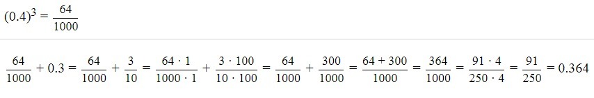 0,4³+0,3=0,4*0,4*0,4+0,3=0,064+0,3= 0,364