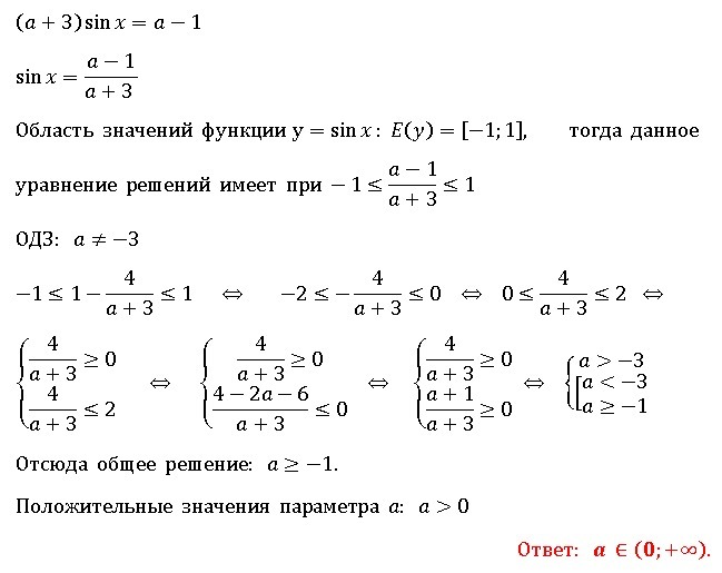 При каких положительных значениях a имеет решение уравнение (a+3)sin x=a-1