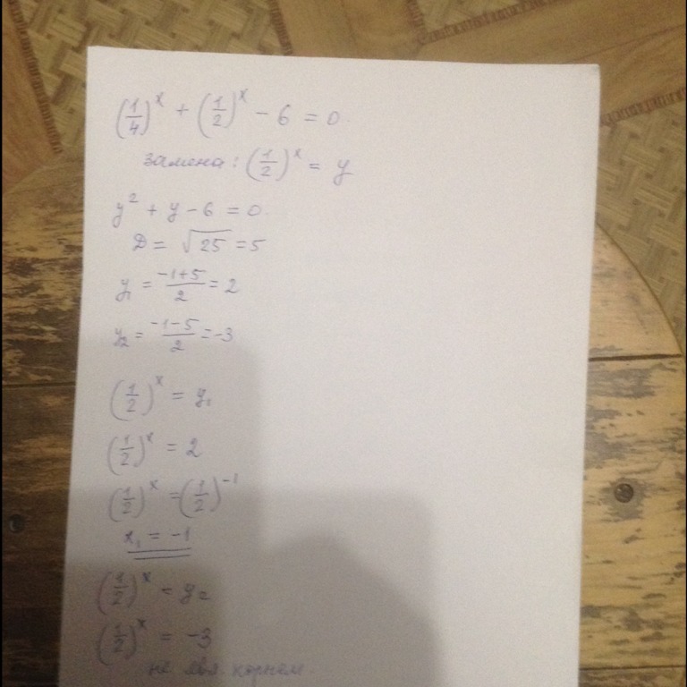 (1/4)^x + (1/2)^x-6 = 0 - Решаем заменой переменных