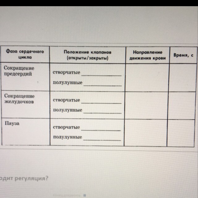 Сокращение предсердий: створчатые открыты, полулунные закрыты, кровь направлена в желудочки, 0.1 секунда