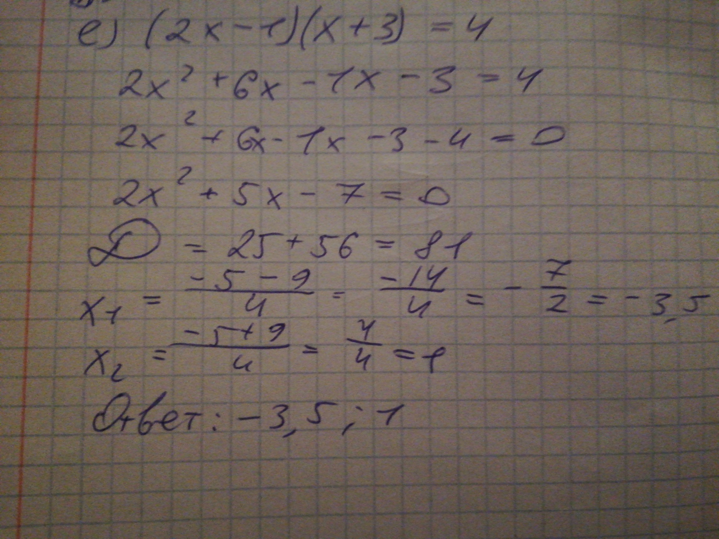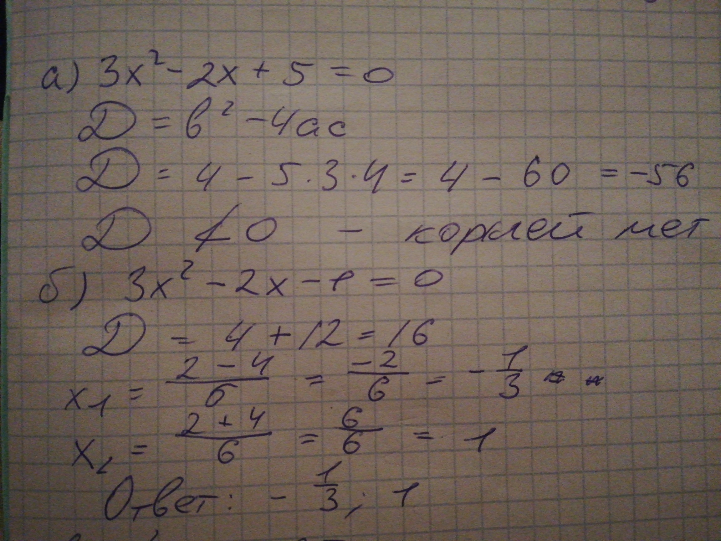 Решите Квадратные уравнения: а) 3x²-2x+5=0; б) 3x²-2x-1=0; в) x²+10x+25=0; г) x²-2x-2=0; д) x³+√₃x-1=0; е) (2x-1)(x+3)=4; ж) (x-2)²-5x(x+3)=5-23x.