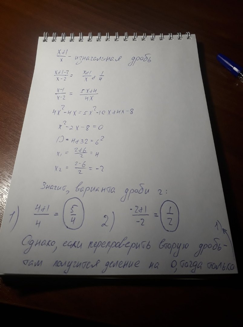 Знаменатель дроби на 1 меньше числителя. Если числитель и знаменатель уменьшить на 2,то дробь увеличится на 1/4. Найдите дробь.