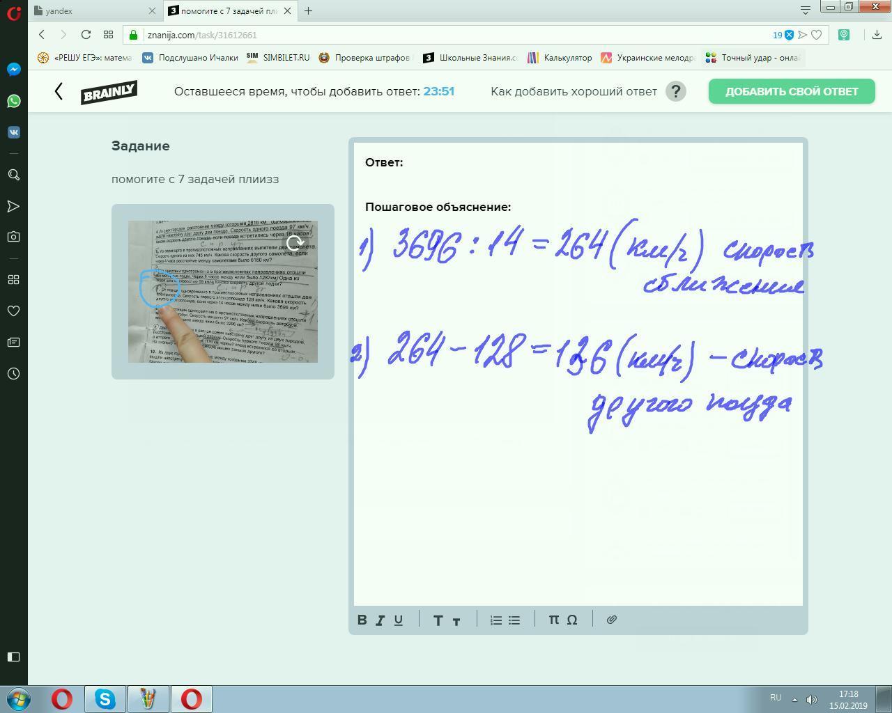3) 1904 : 14 = 136 км/ч - скорость второго поезда.