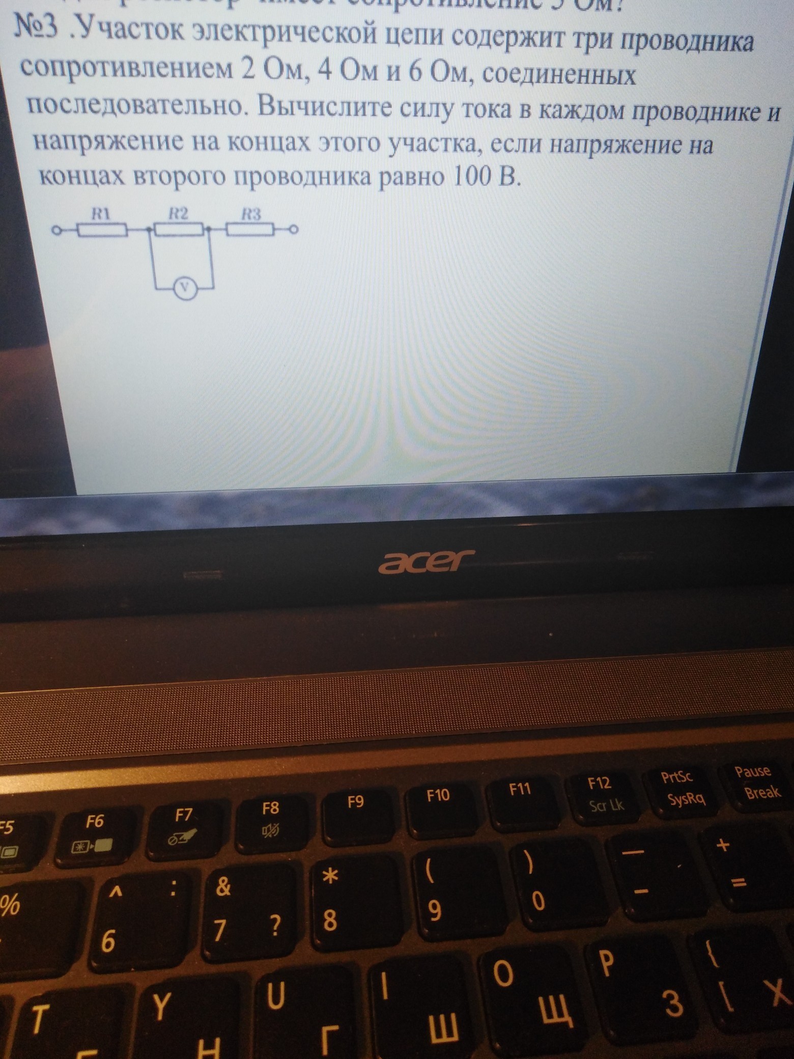 участок электрической цепи содержит три проводника сопротивлением 2 ом, 4 ом и 6 ом, соединённых последовательно. Вычислите силу в каждом проводнике и напряжение на концах этого участка, если напряжение на концах второго проводника равно 100 В
