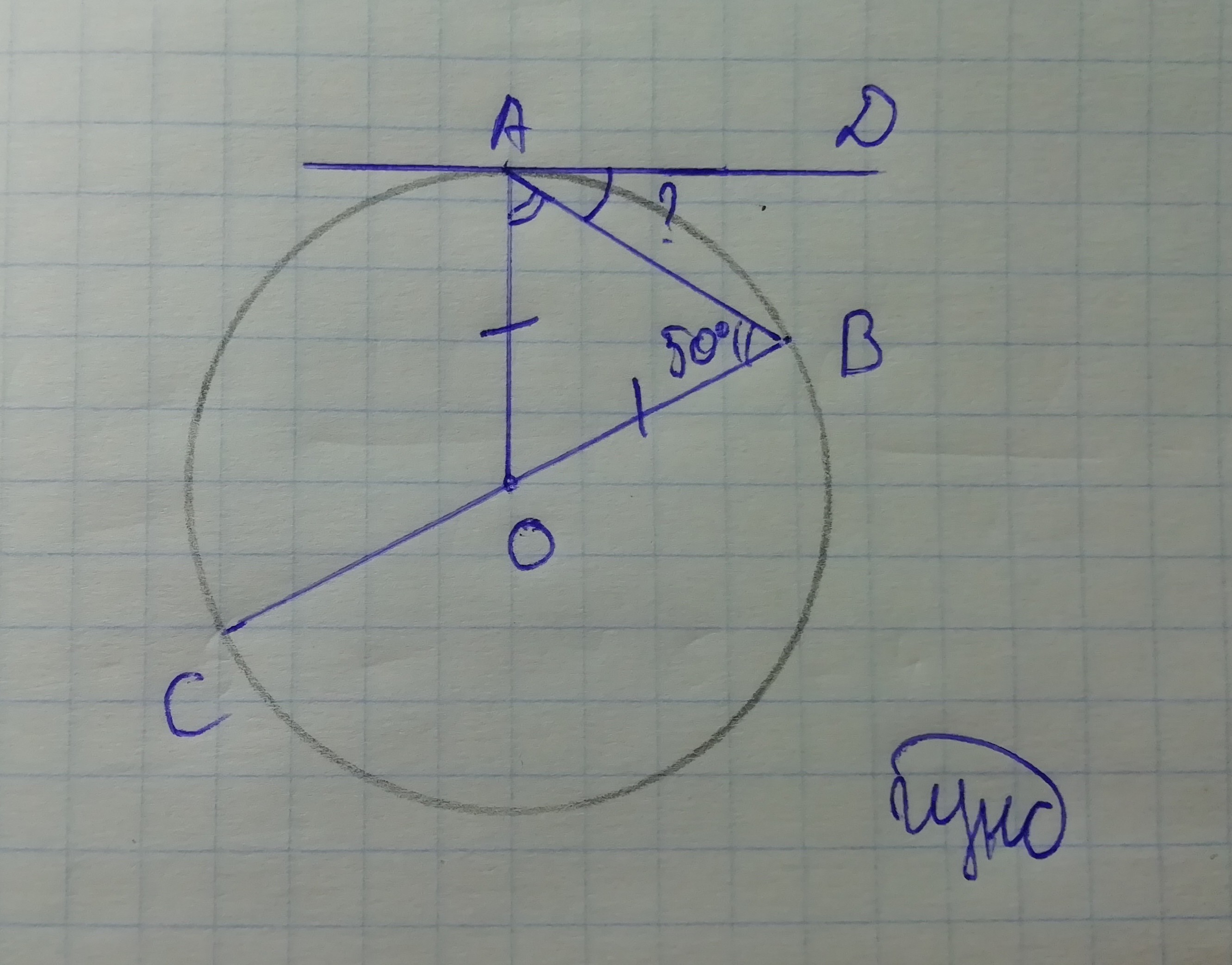∠DAB = 90 - 50 = 40° (касательная к окружности перпендикулярна радиусу, проведённому в точку касания)