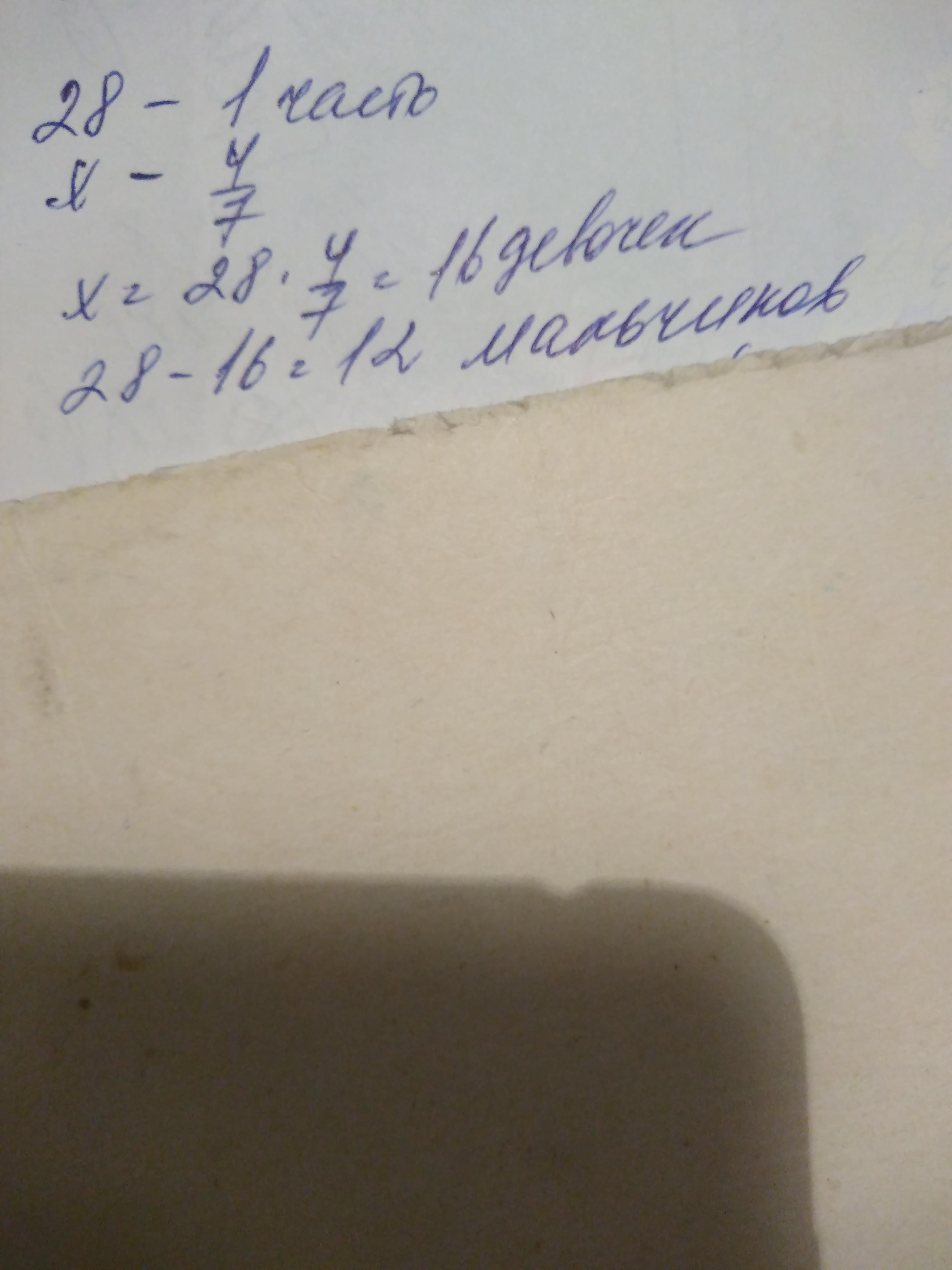 28 : 7 * 4 = 16 - девочки.