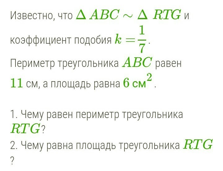 P(Δ АВС) : Р(ΔRTG)=1/7