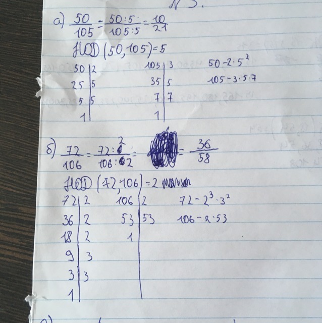№3. а) 50/105 = 50:5/105:5 = 10/21