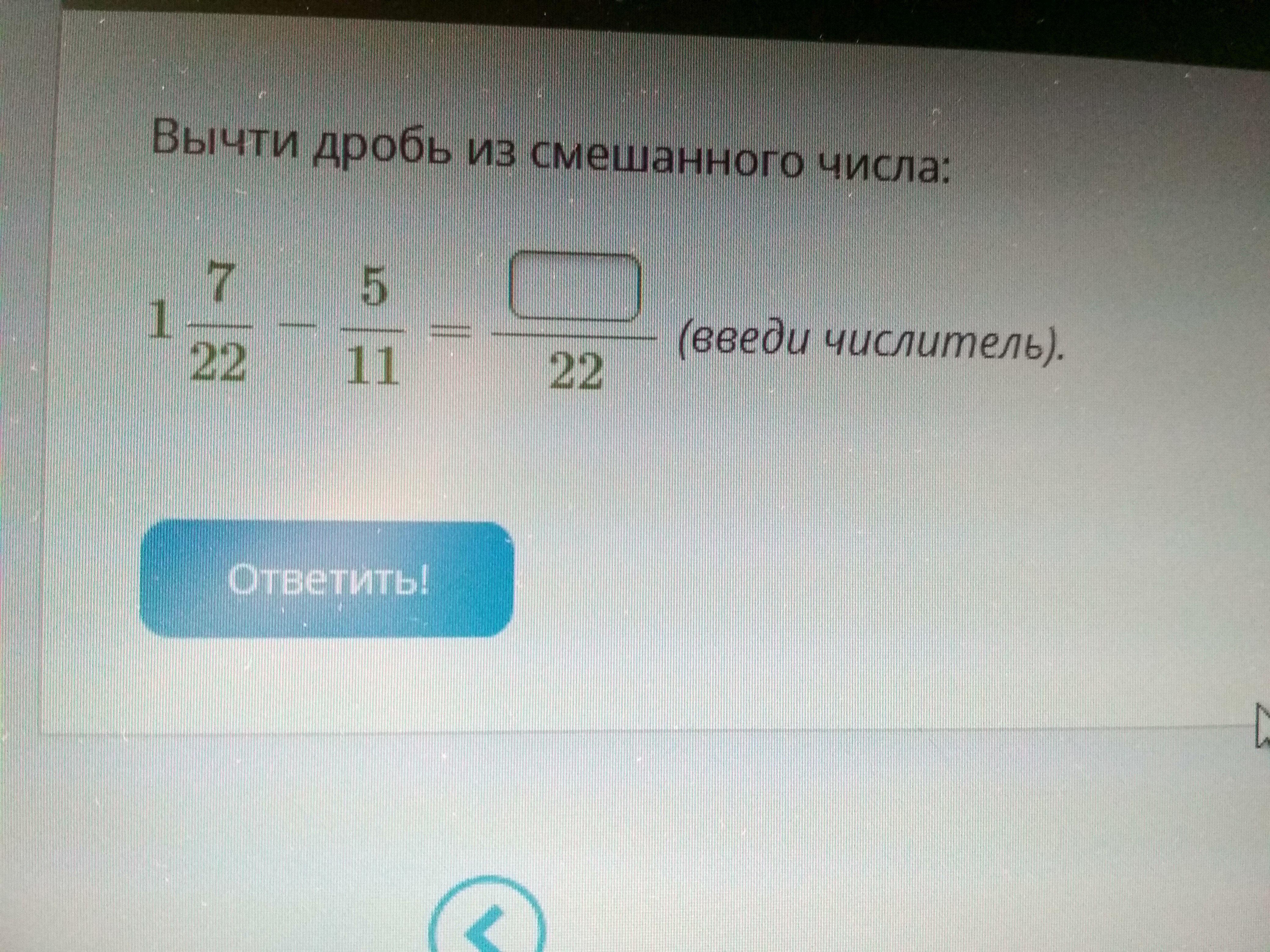 1 7/22 - 5/11 = 19/22 Ответ 19/22