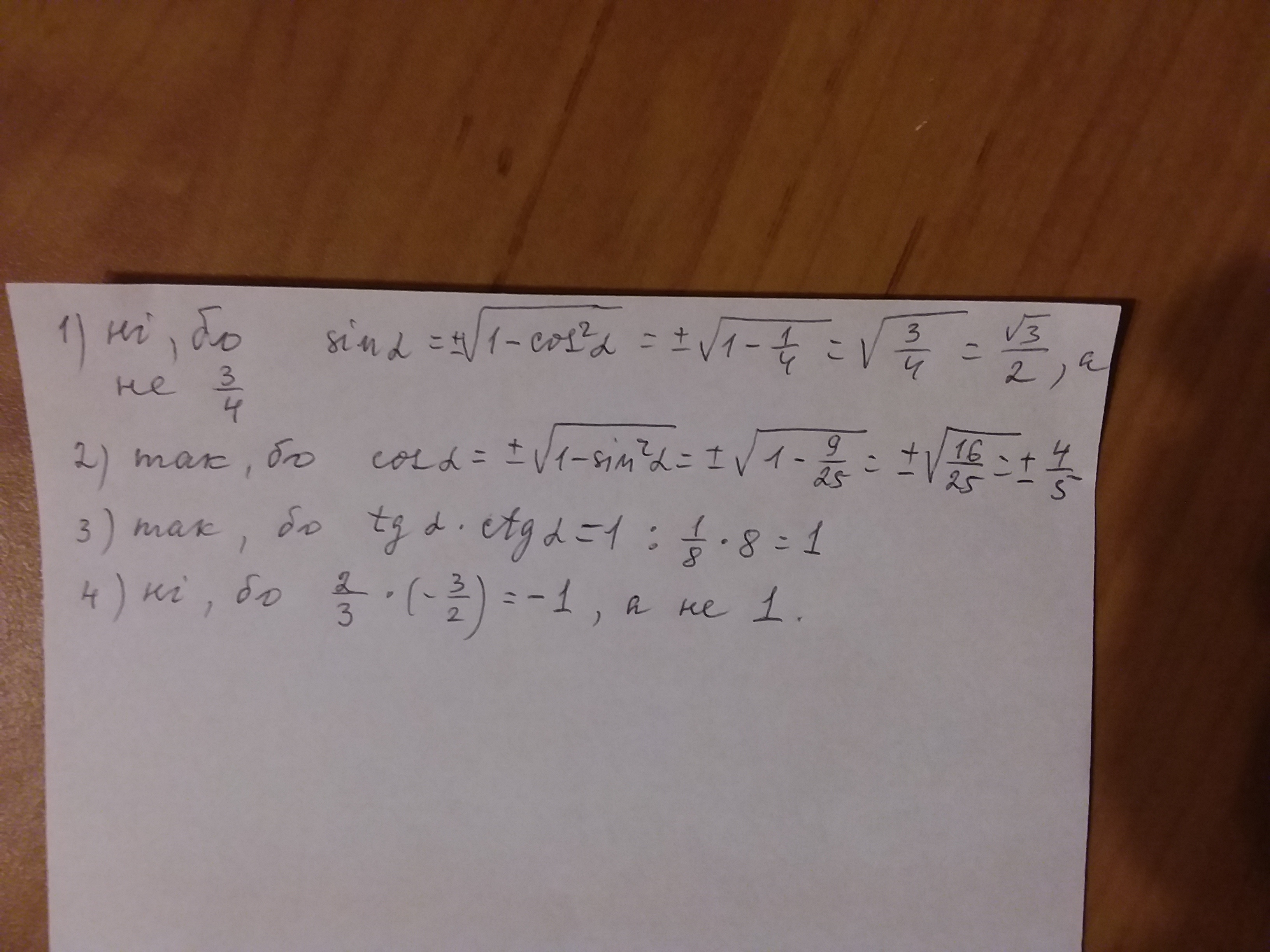 1) cos a = 1/2; sin a = 3/4