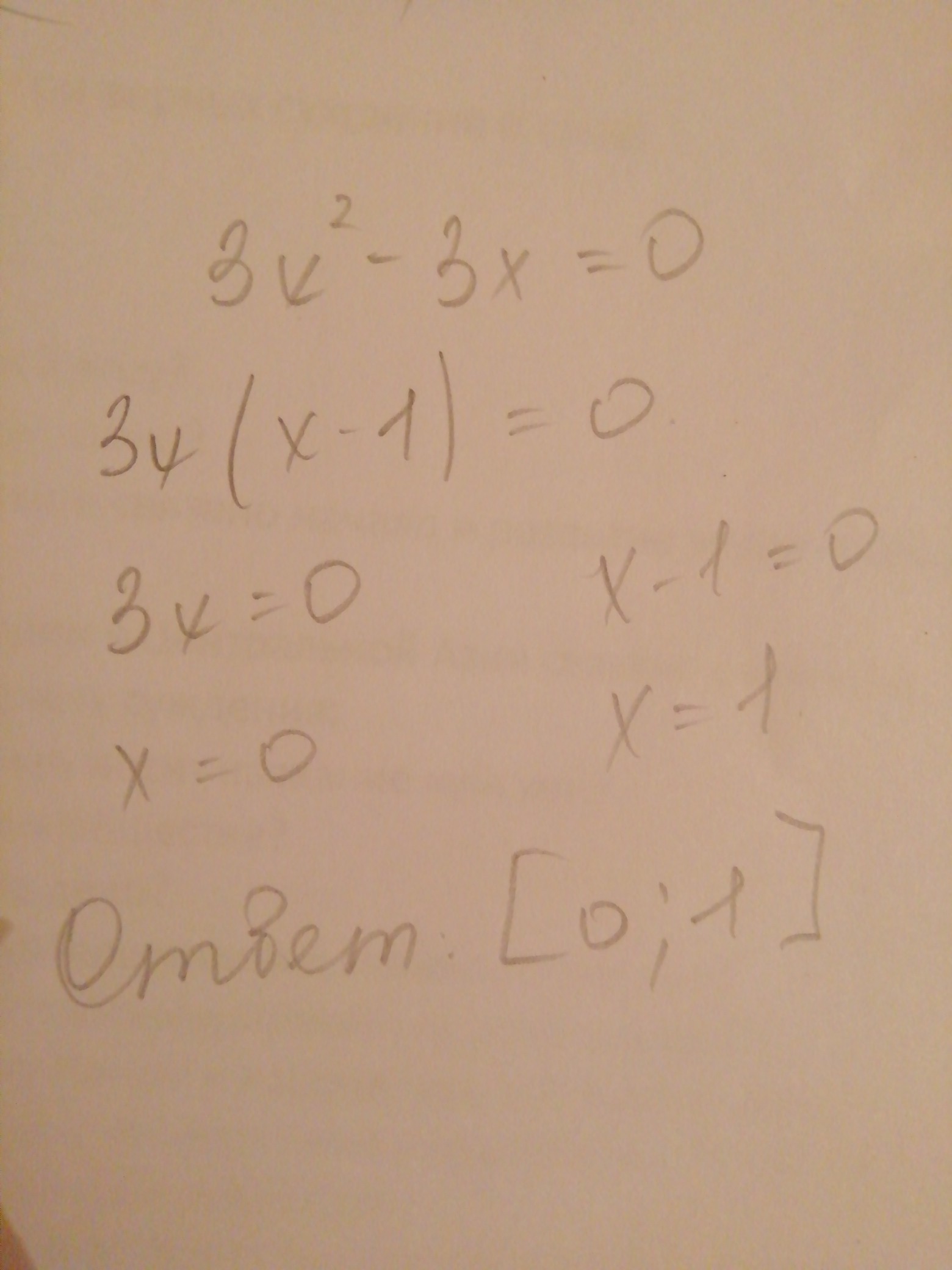 Указать промежуток, содержащий все корни квадратного уравнения: 3х^2 - 3х=0