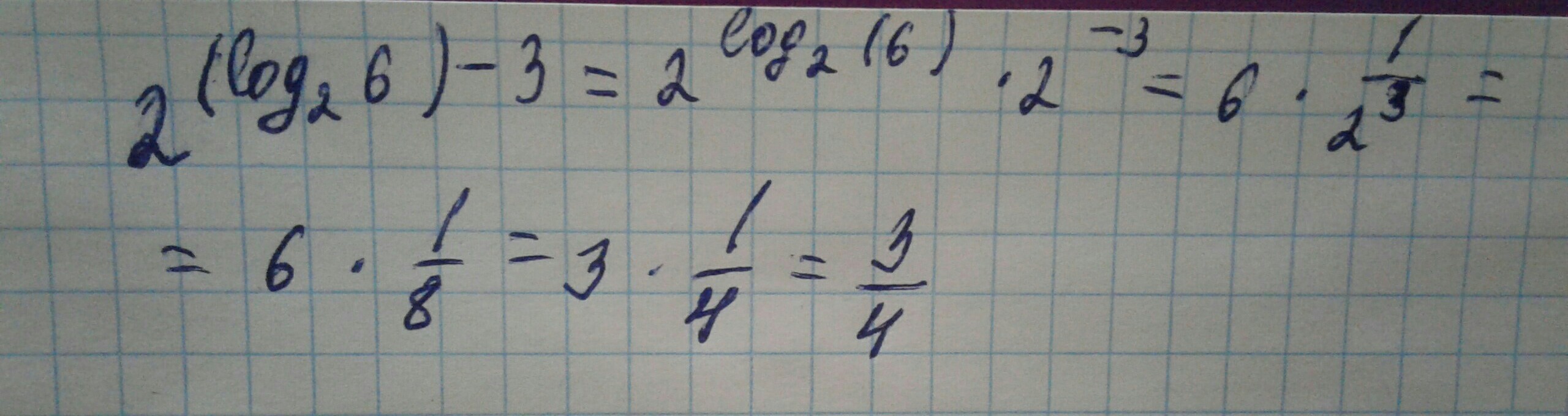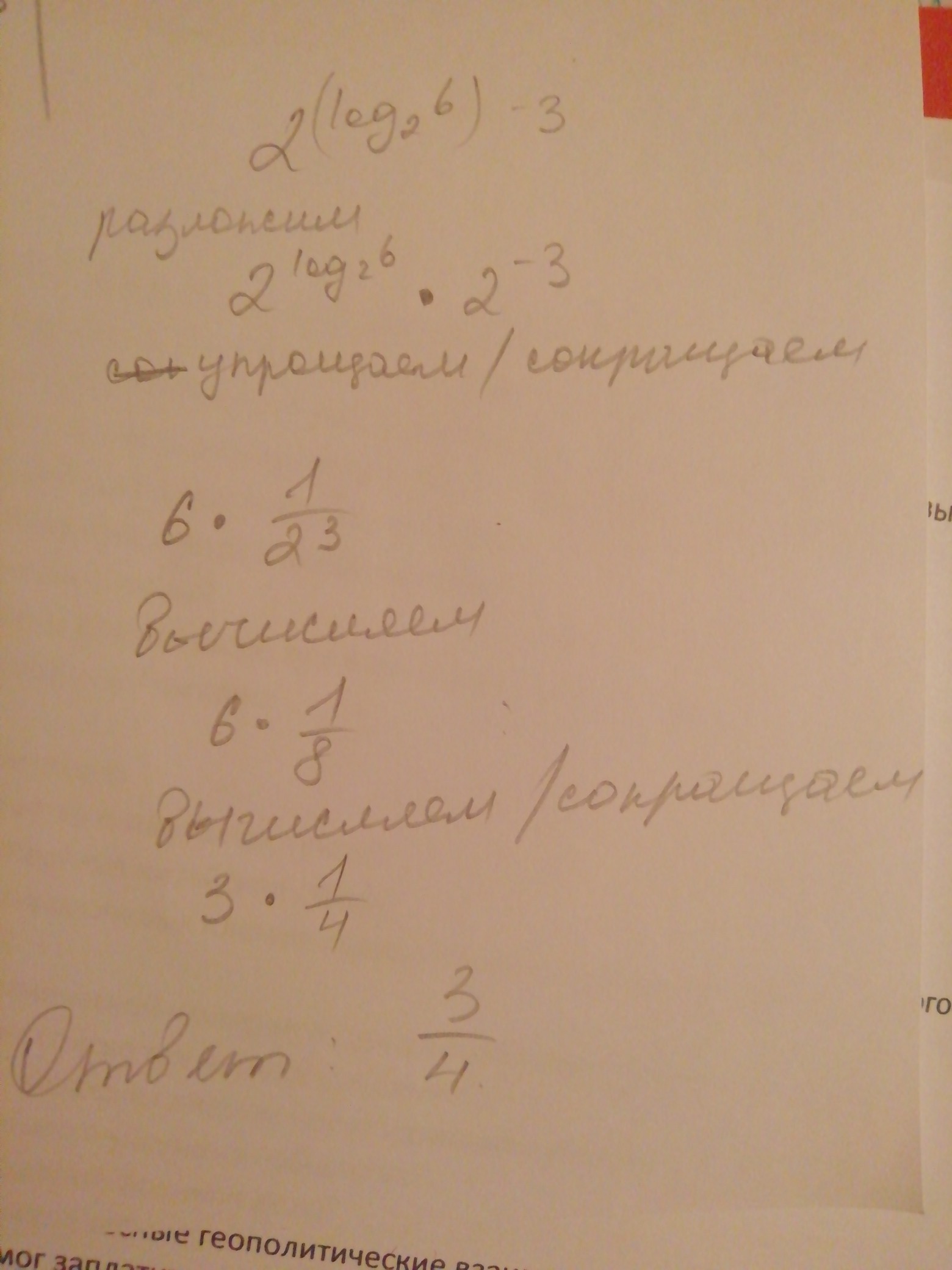 практически все понятно,но там где log пропадает не очень ,что на что нужно сократить,чтобы получить 6×1/2^3