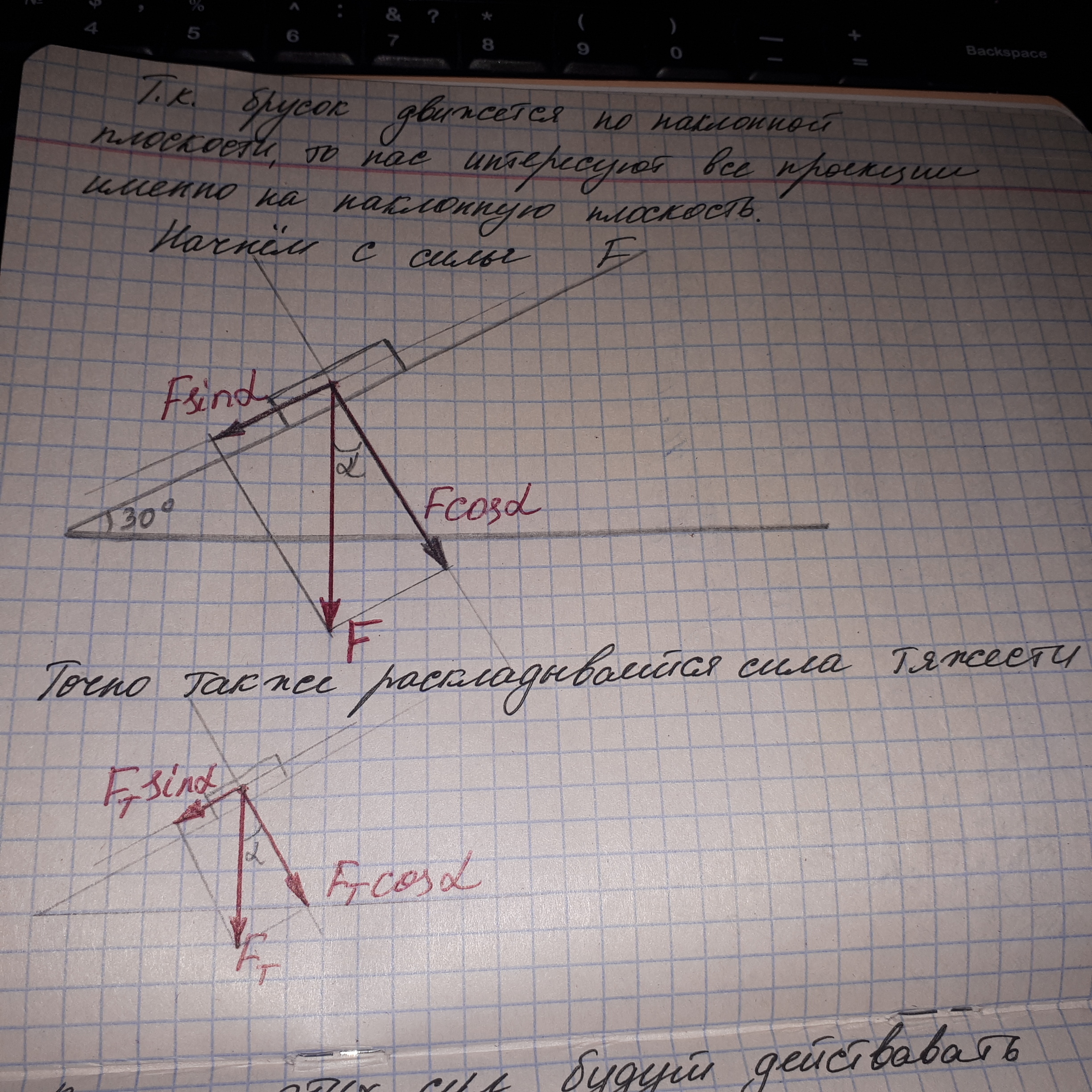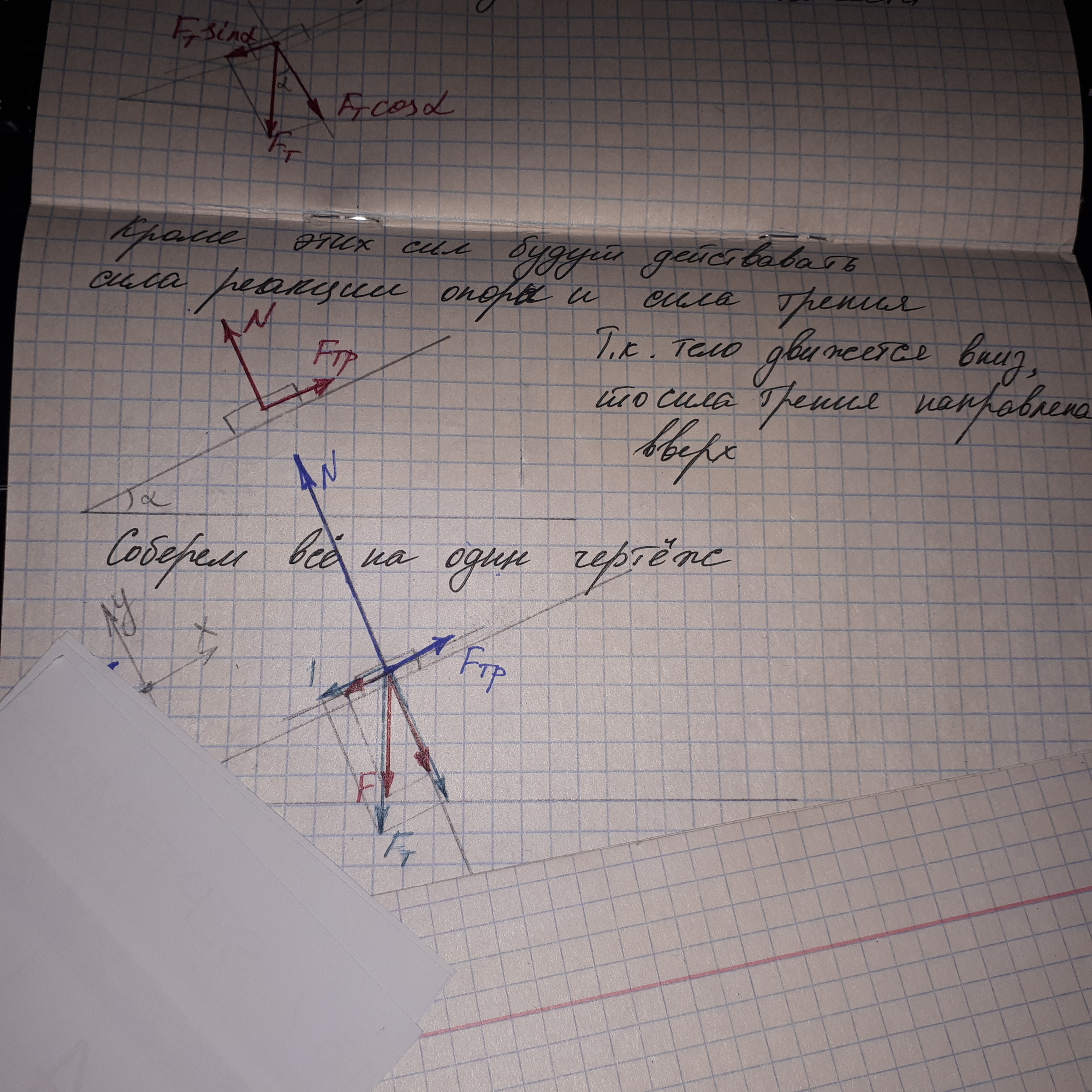 Не совсем поняла перевод. Здесь если его тянут вниз. Если он просто стоит, то силы F не будет и Fт*sin a=Fтр