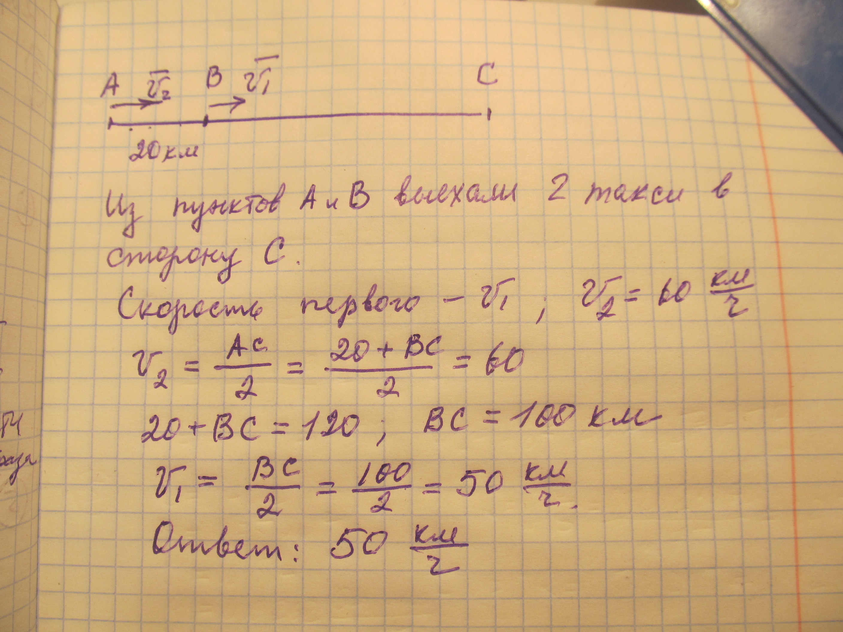 С двух сел расстояние между которыми 20 км одновременно в одном направлении выехали два маршрутных такси через два часа они прибыли в одно и тоже остановку какая скорость первого маршрутного такси если скорость второго 60 километров в час решить задачу