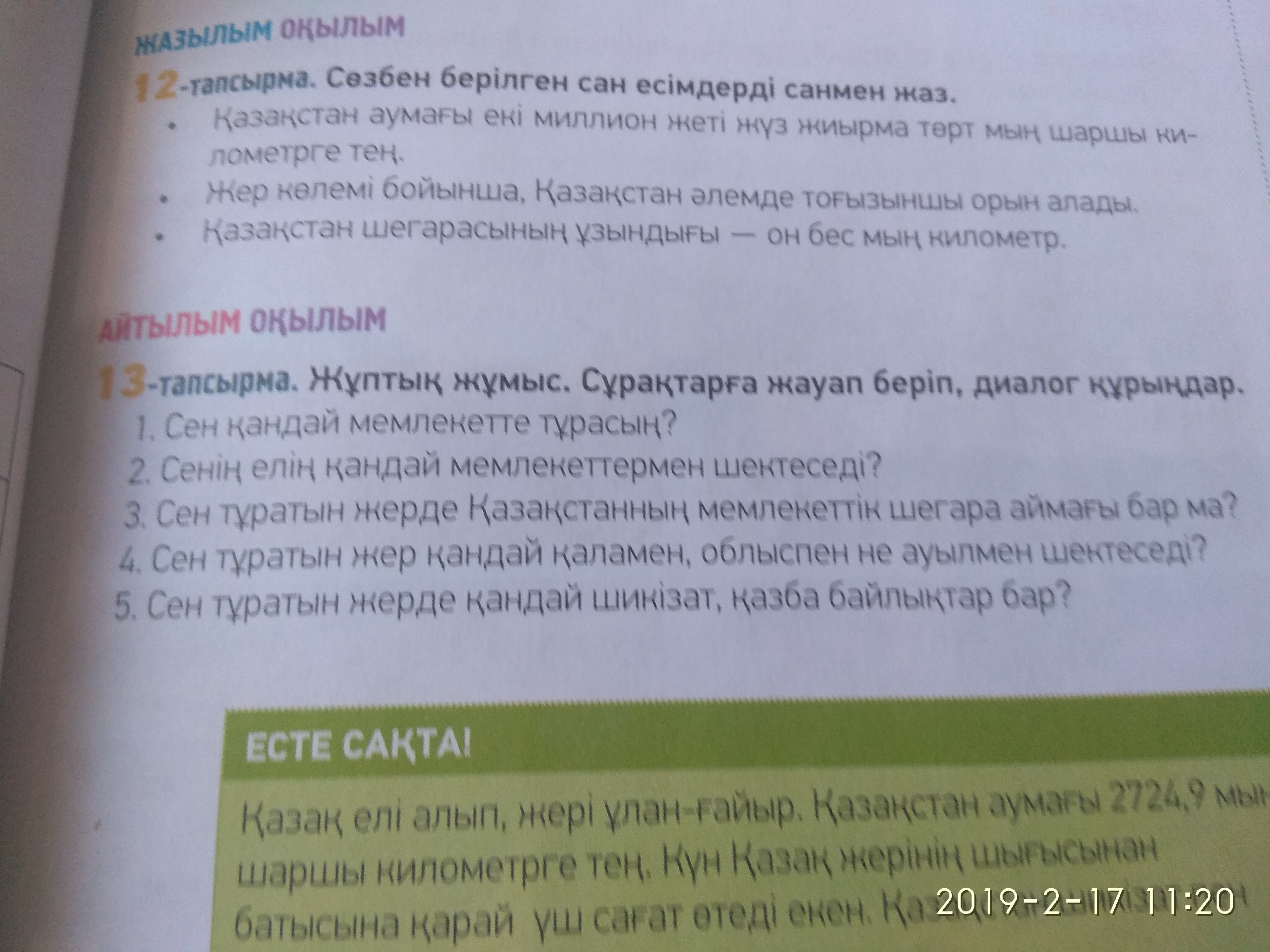 -Менің елім Ресей, Қытай,Өзбекстан, Қырғызстан мемлекеттерімен шектеседі.