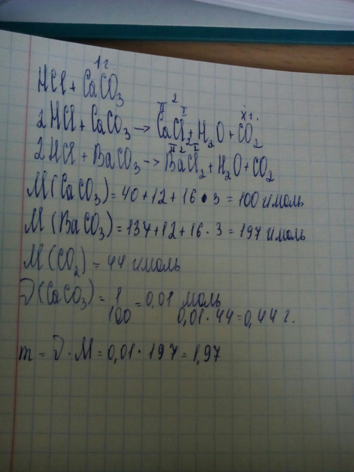 На чашках весов уравновешены два сосуда, в которые налита соляная кислота. В один из сосудов насыпали мела массой 1 г. Сколько надо прибавить карбоната бария в другой сосуд, чтобы равновесие не нарушилось
