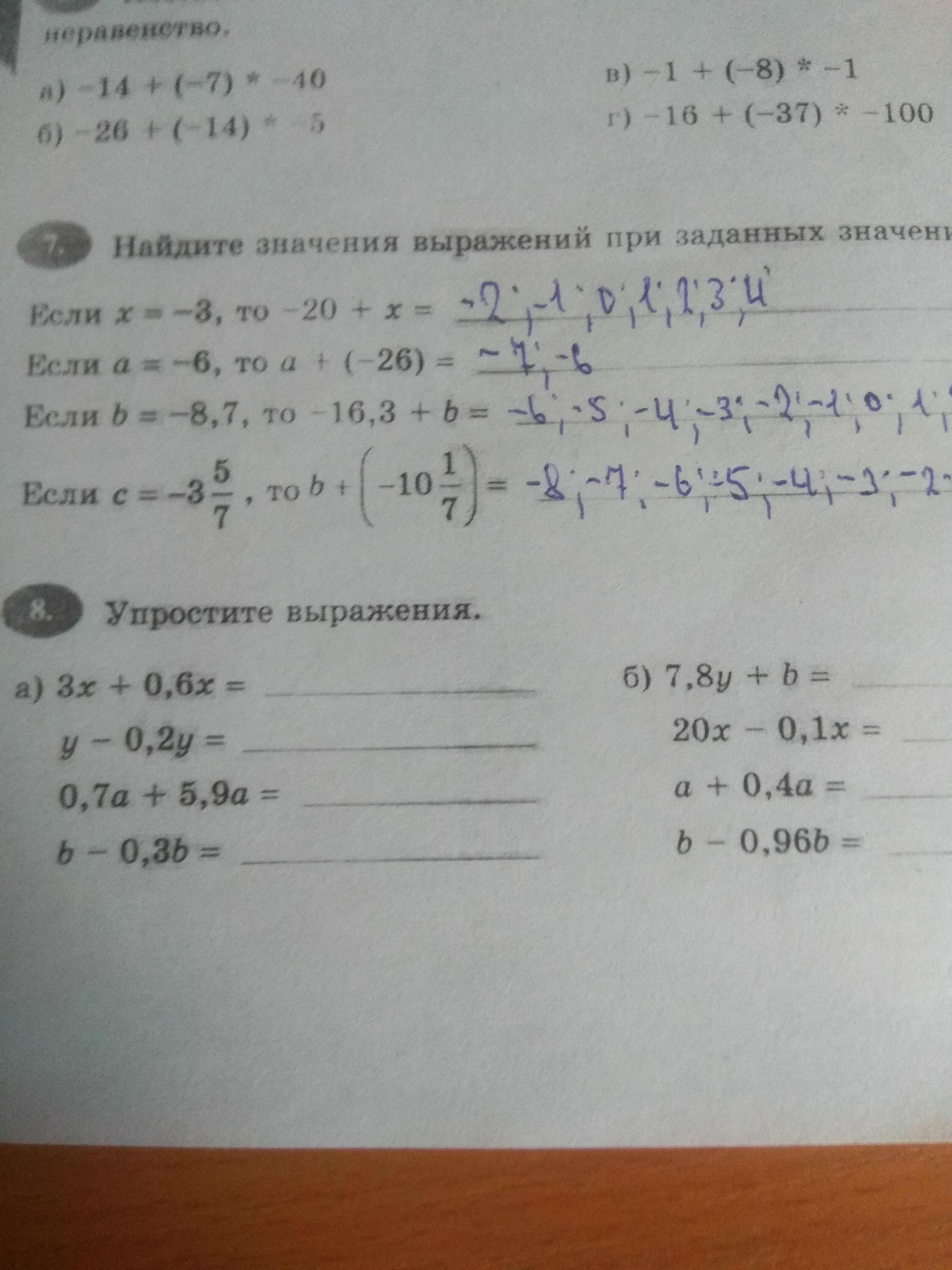 б) = 7,8y + b - ничего нельзя привести, т.к. разные переменные