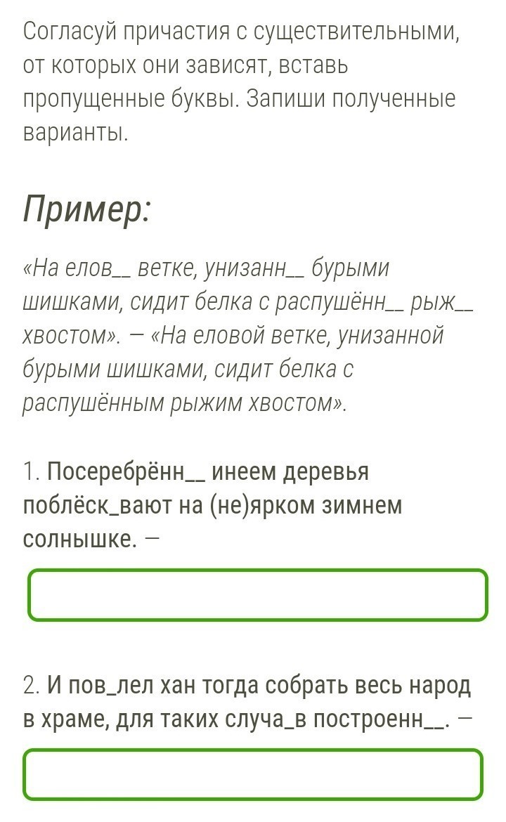 Согласуй причастия с существительными, от которых они зависят, вставь пропущенные буквы. Запиши полученные варианты.
